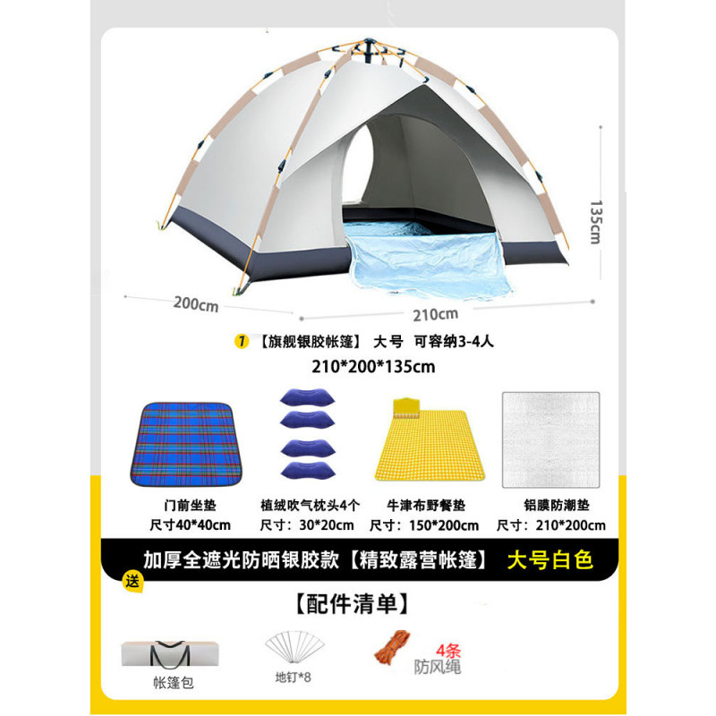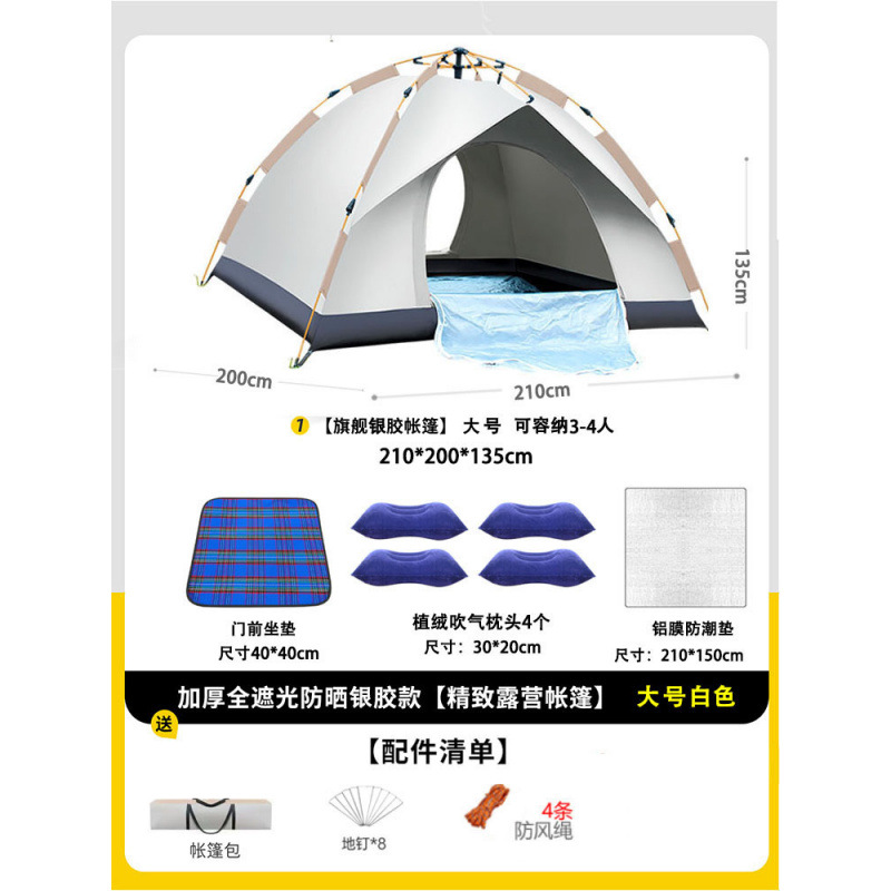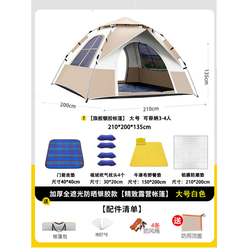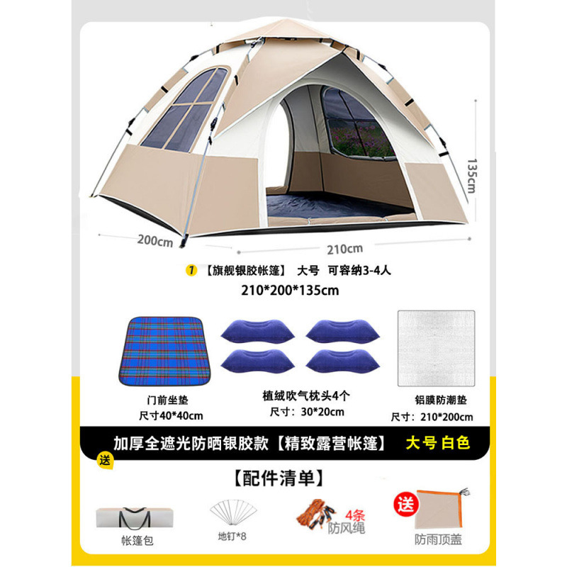 • 텐트+피크닉매트+베개*4+방습알루미늄매트[4인양문]베이지