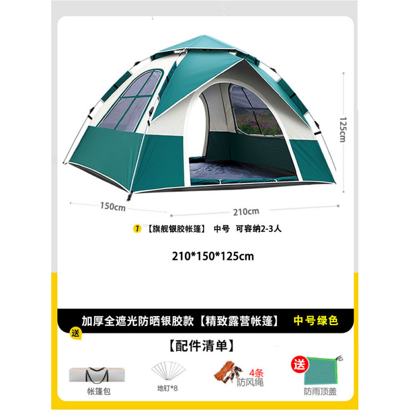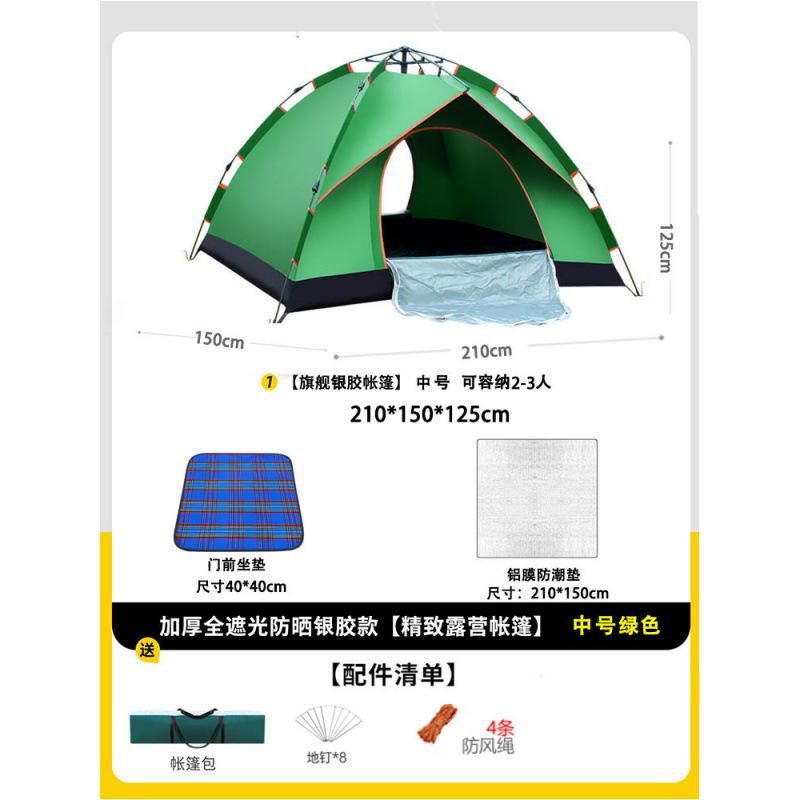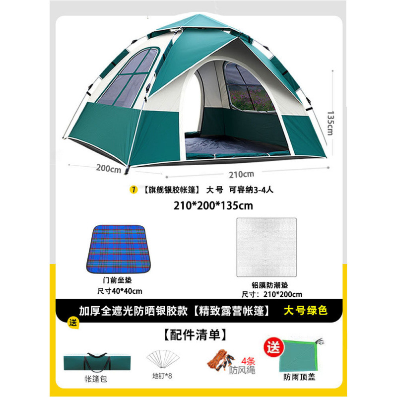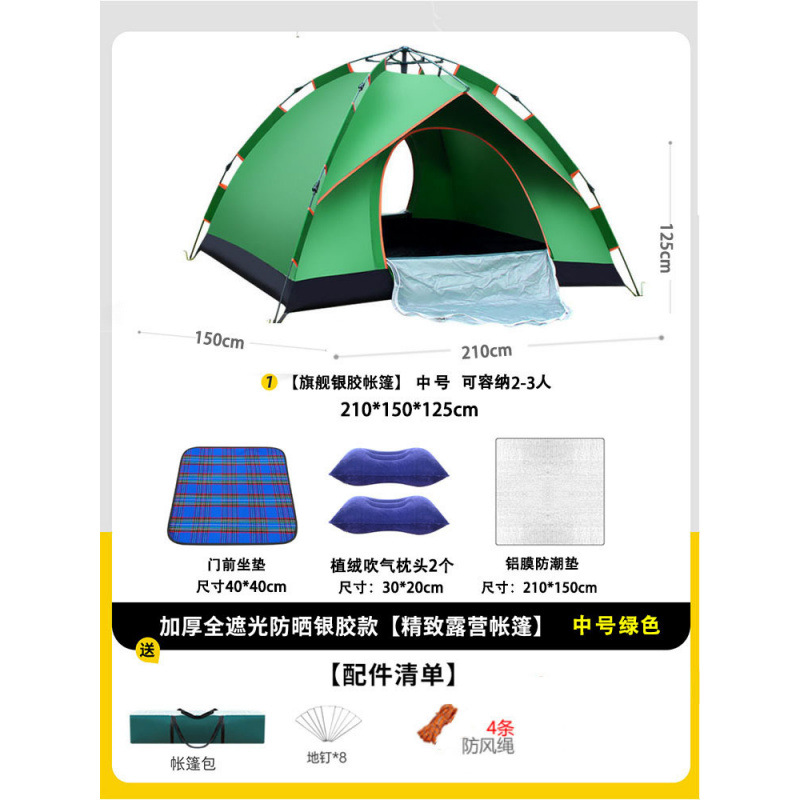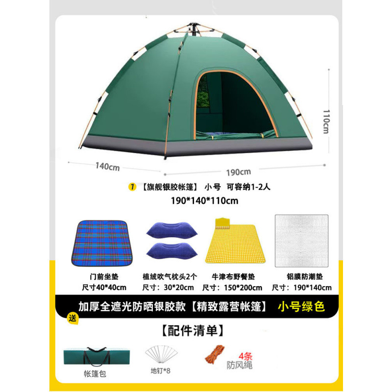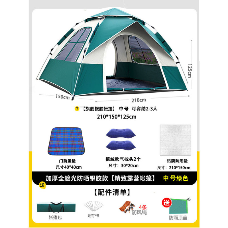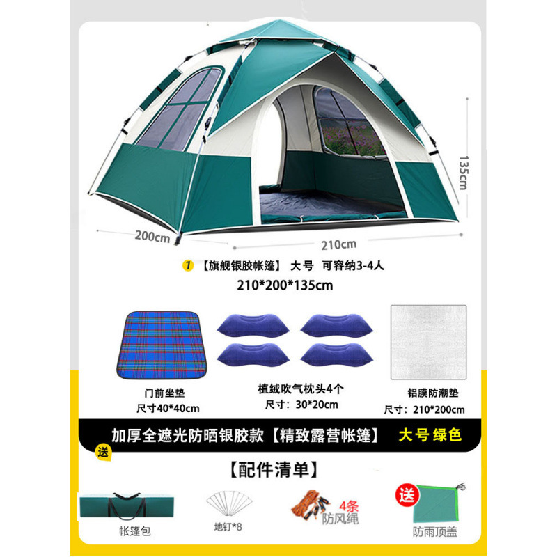 • 텐트+피크닉매트+베개*2+방습알루미늄매트 [2인, 문 1개, 창문 1개] 그린