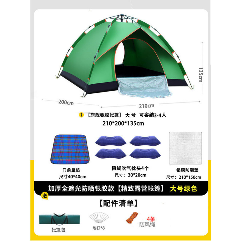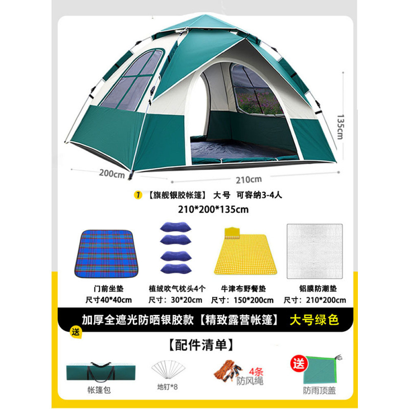 • 텐트+피크닉매트+베개*4+방습알루미늄매트[4인양문]그린