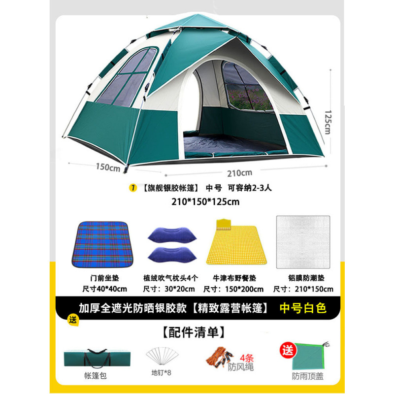 • 텐트 + 피크닉매트 + 베개*2 + 방습알루미늄매트 [2인용 이중문 및 이중창] 녹색 및 흰색