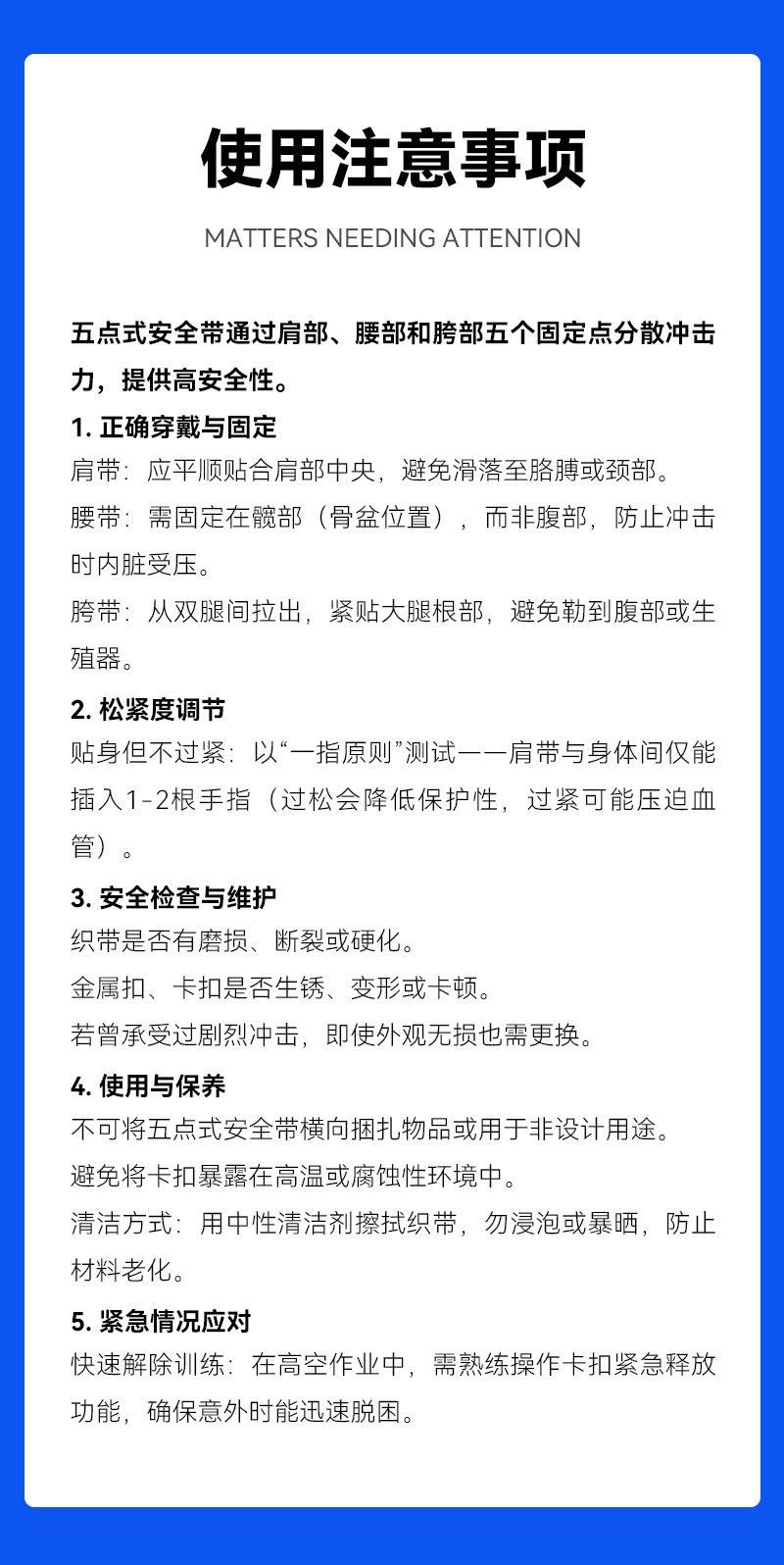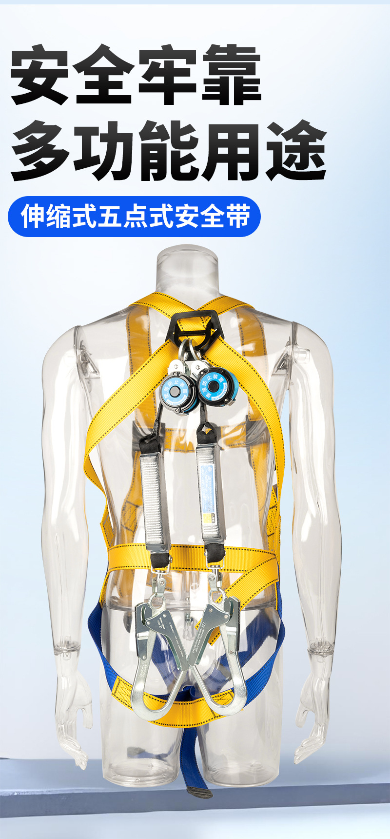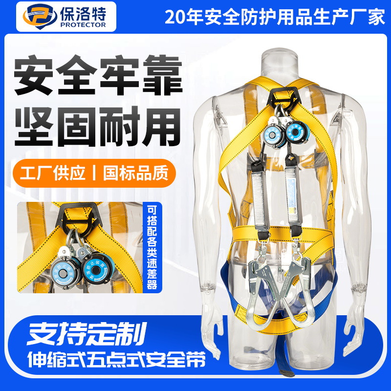 고공 작업용 접이식 5점 안전벨트, 이중 후크 보호 로프, 추락 방지 야외 전기 안전벨트