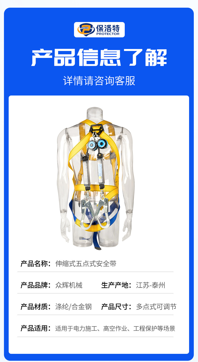 고공 작업용 접이식 5점 안전벨트, 이중 후크 보호 로프, 추락 방지 야외 전기 안전벨트스토어 가기