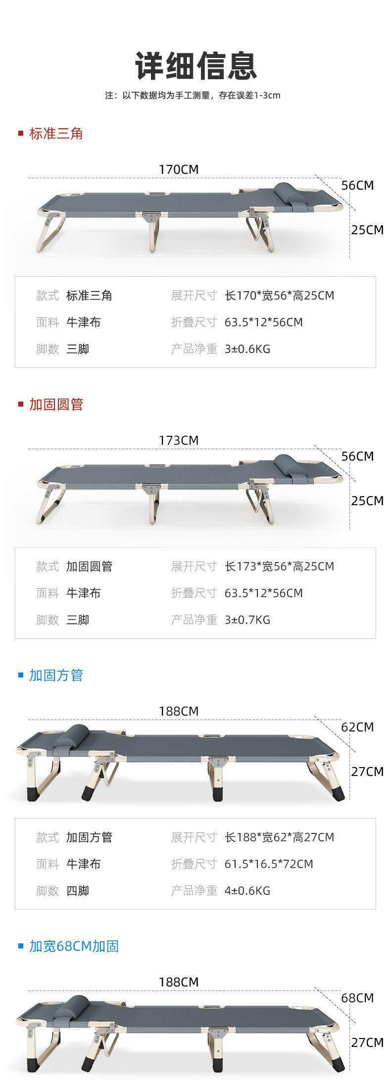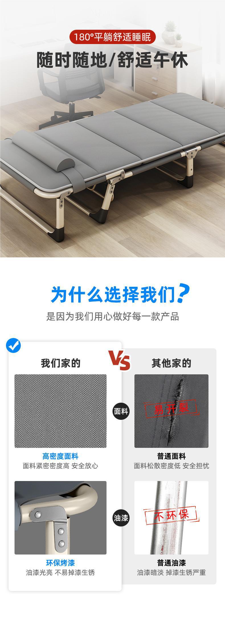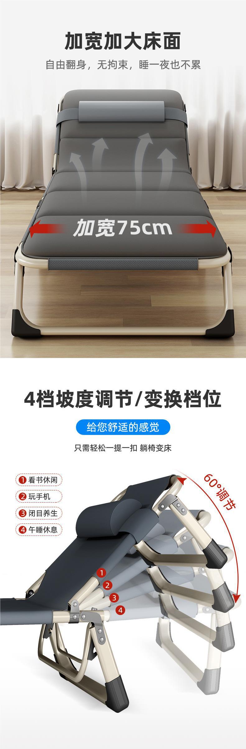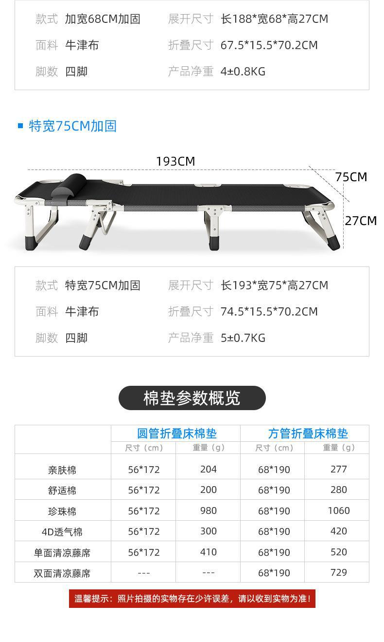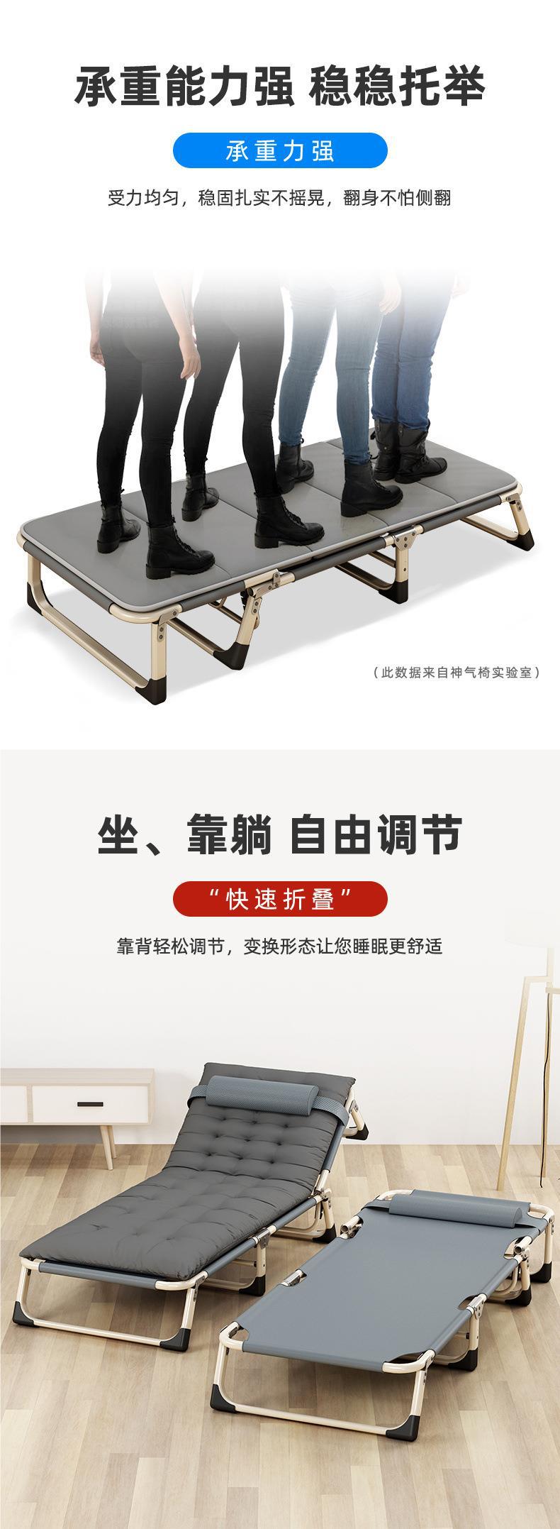 1인용 접이식 침대 소파 베드 사무실 점심 시간 침대 낮잠 침대 야외 간이 침대 줄무늬 두꺼운 사각형 튜브 검정색스토어 가기