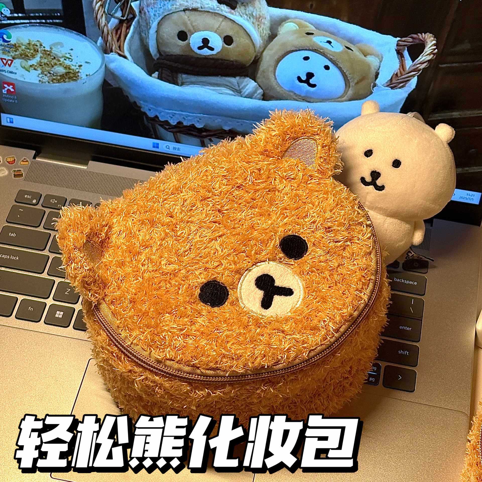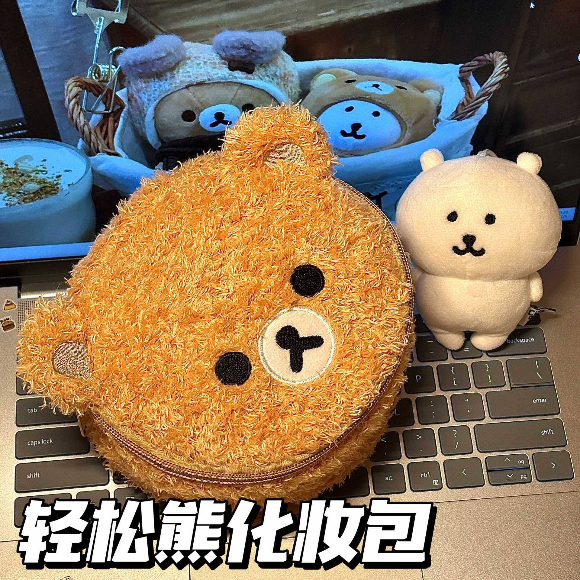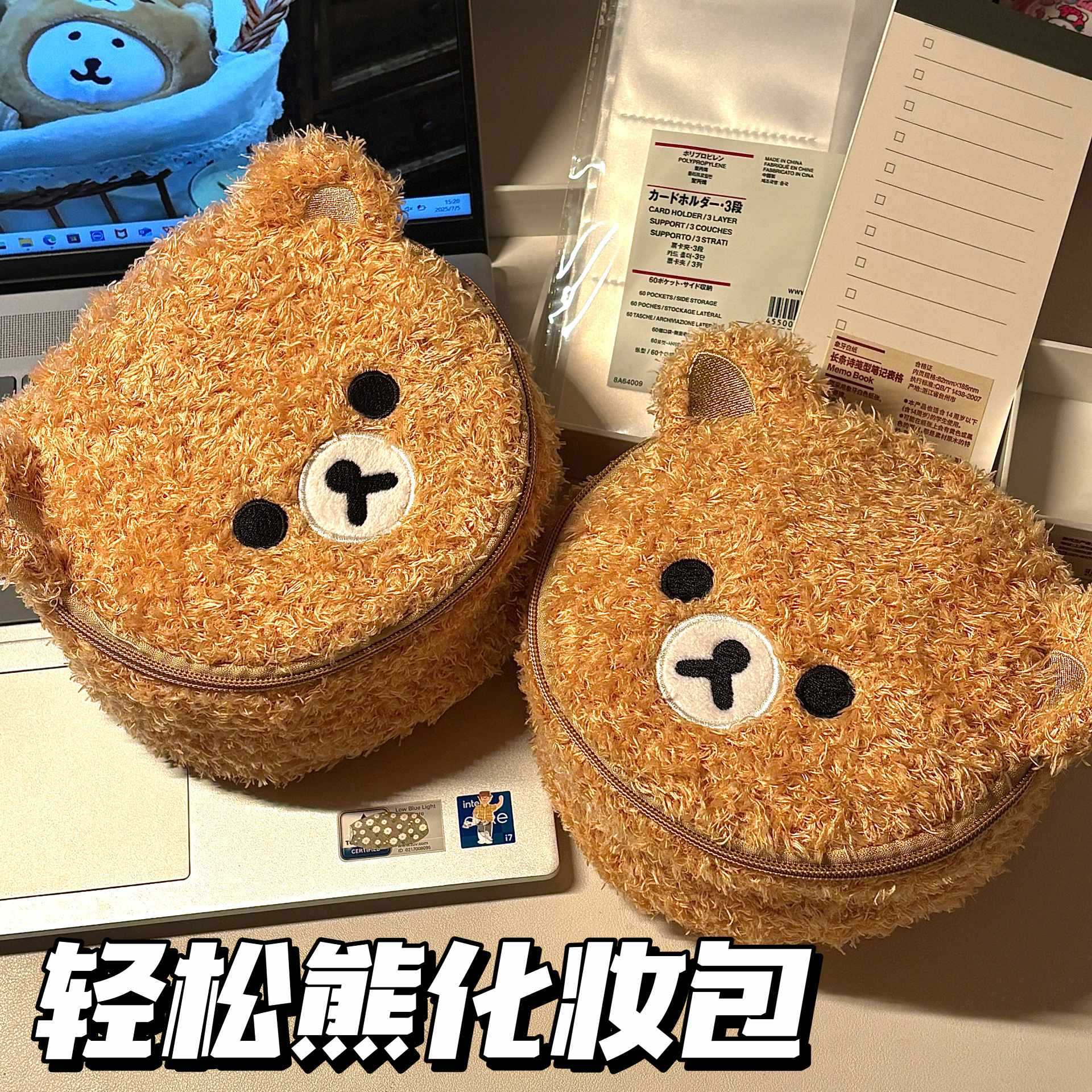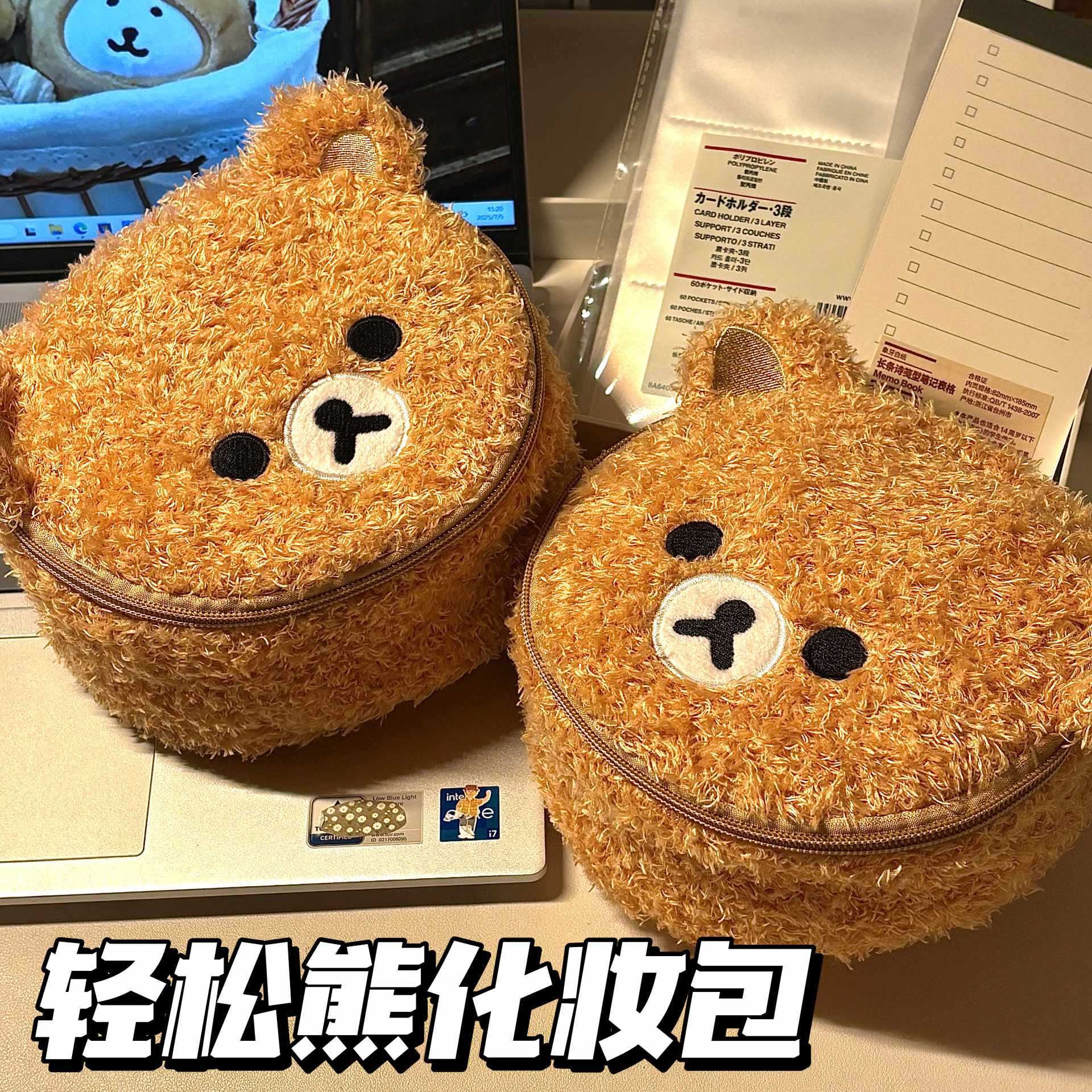 여성을위한 인기있는 플러시 귀여운 곰 화장품 가방 휴대용 여행 귀여운 수 놓은 3 차원 휴대용 세면 용품 보관 가방