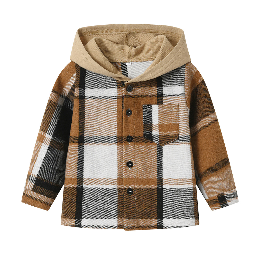 소년 격자 무늬 셔츠 긴팔 얇은 후드 코트 봄, 가을 새로운 OEM 맞춤형 아동 셔츠 캐주얼 카디건