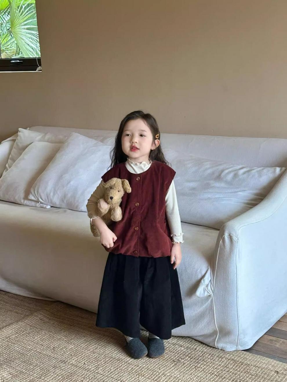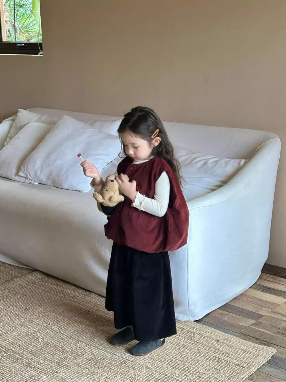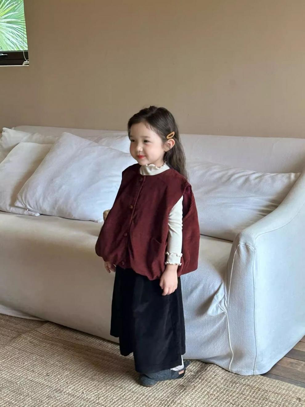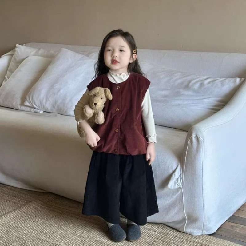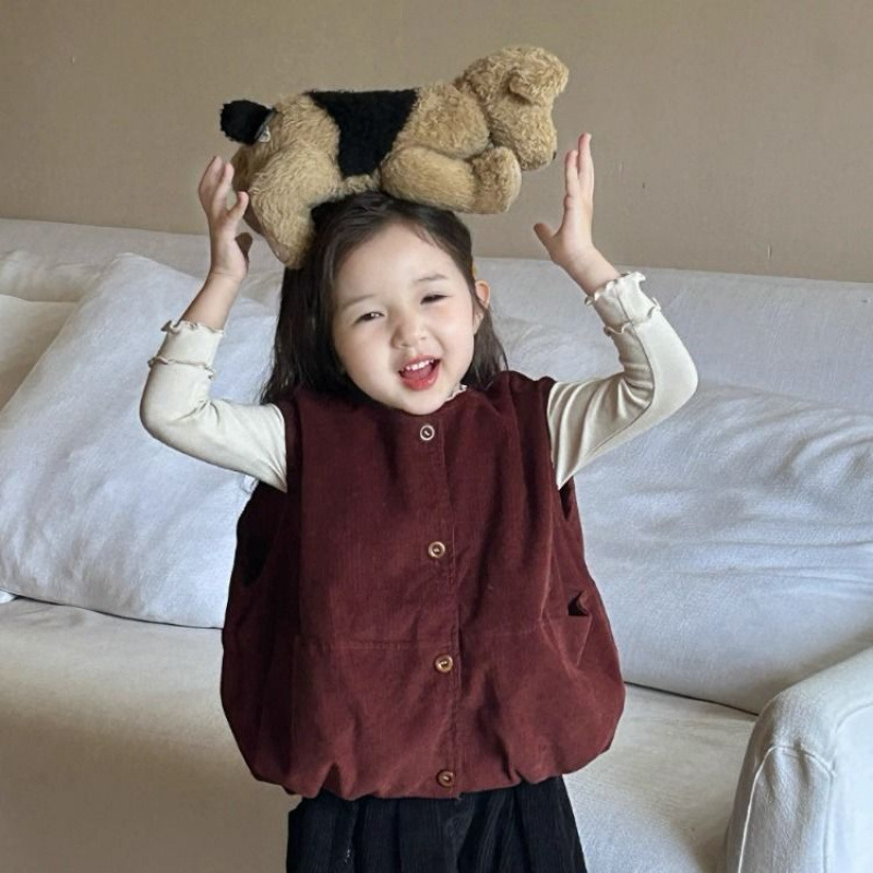 여자 코듀로이 앙고라 레드 조끼 2025 봄 새로운 한국 스타일 아동 의류 유행 유치원 조끼스토어 가기