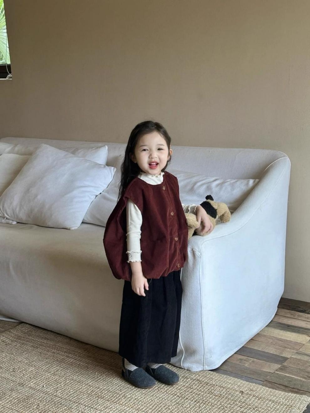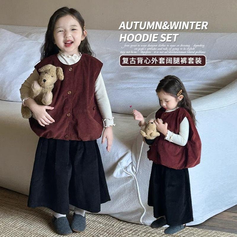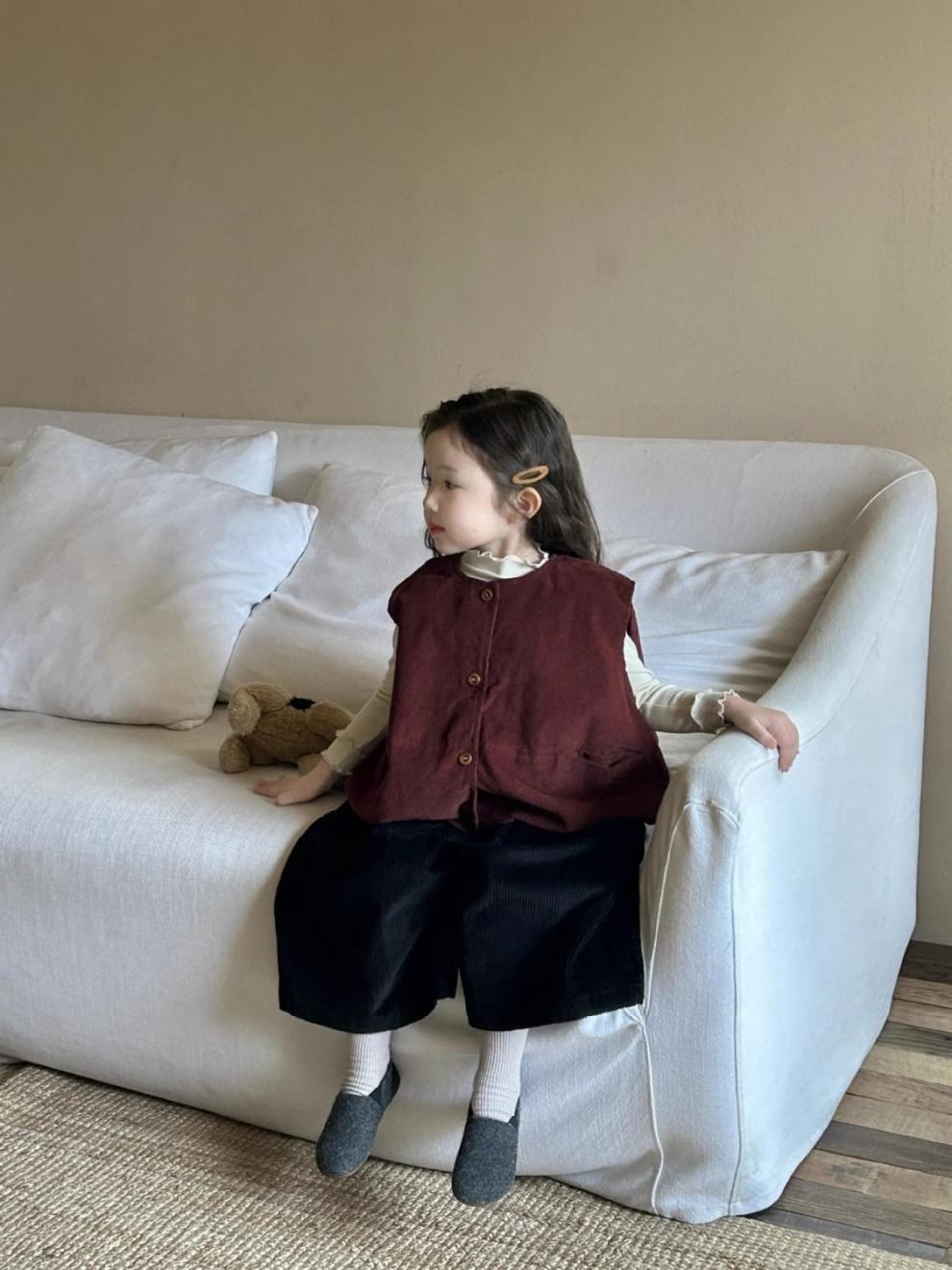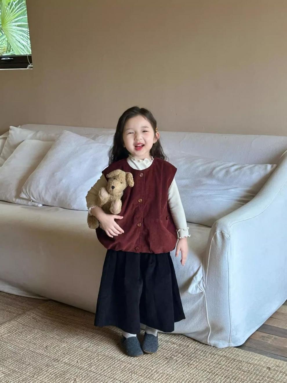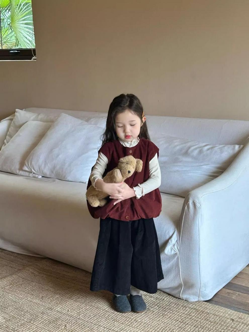 여자 코듀로이 앙고라 레드 조끼 2025 봄 새로운 한국 스타일 아동 의류 유행 유치원 조끼스토어 가기
