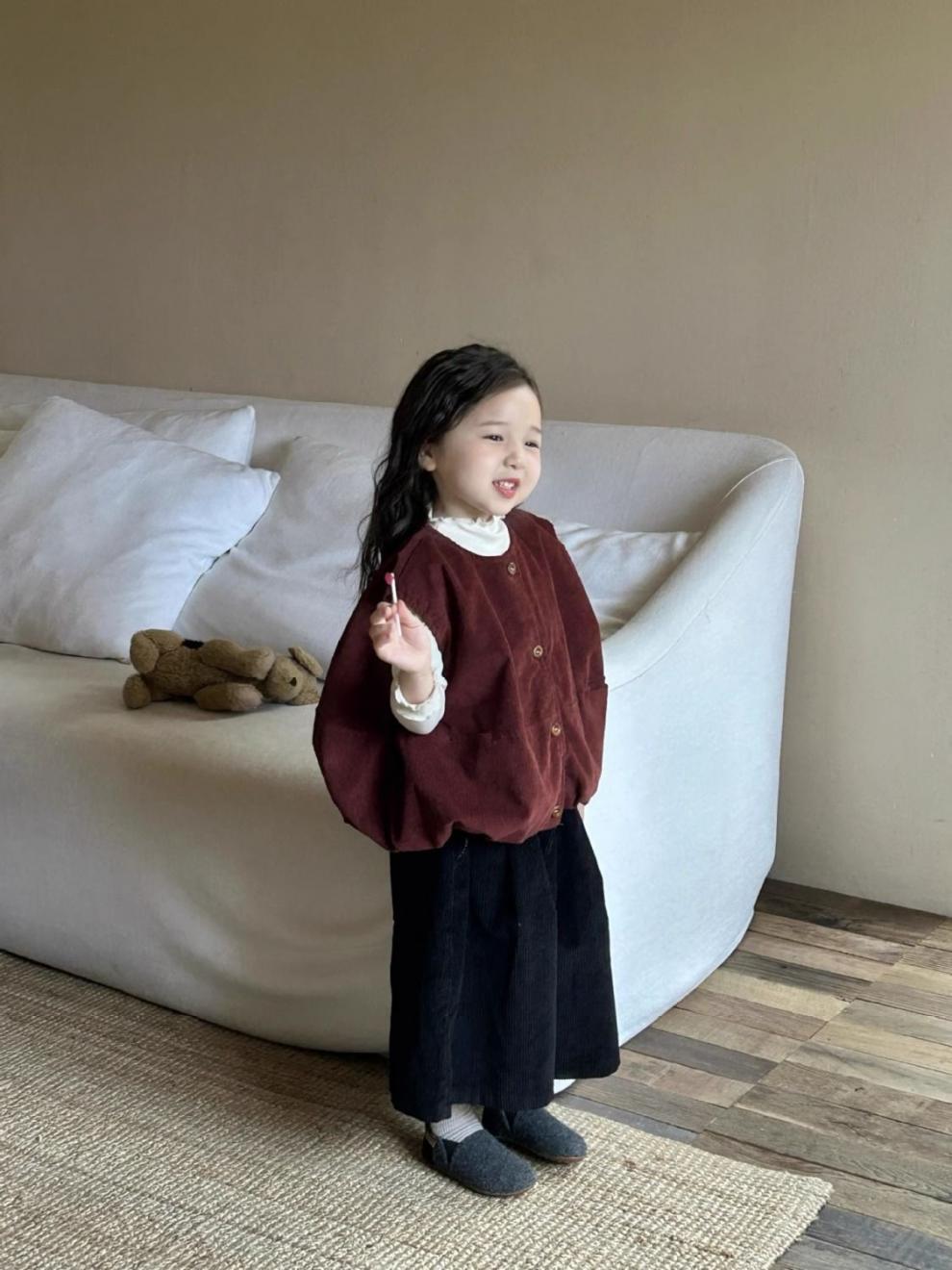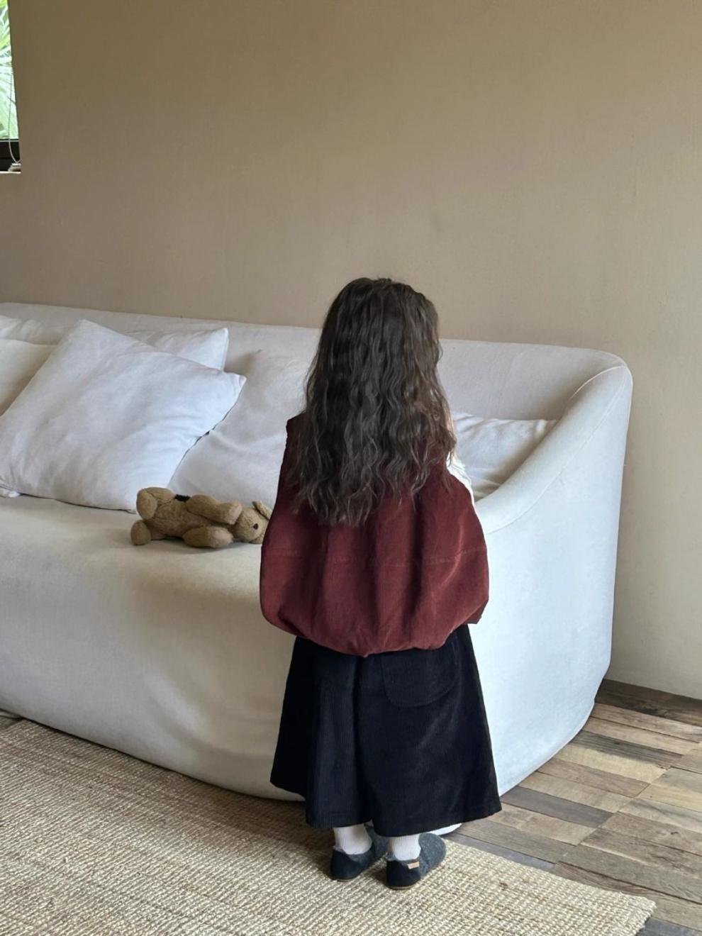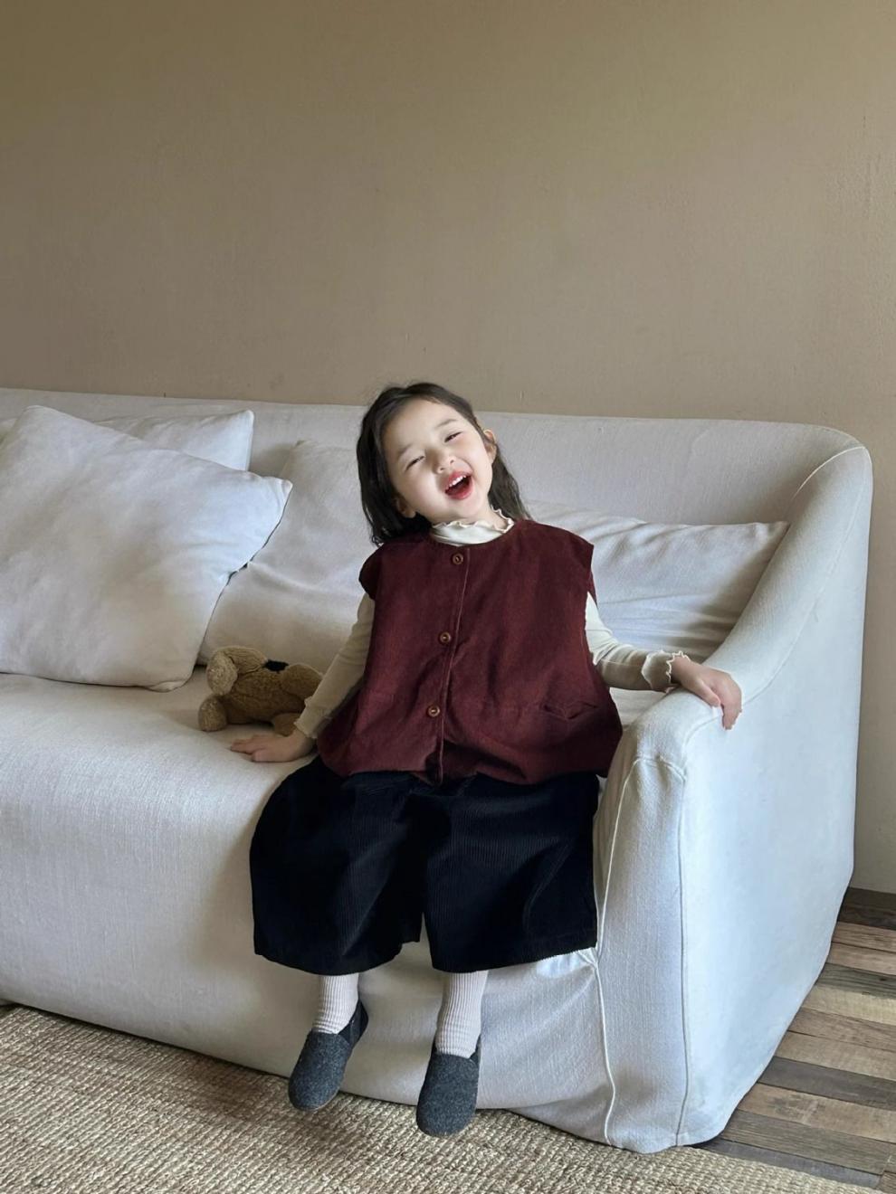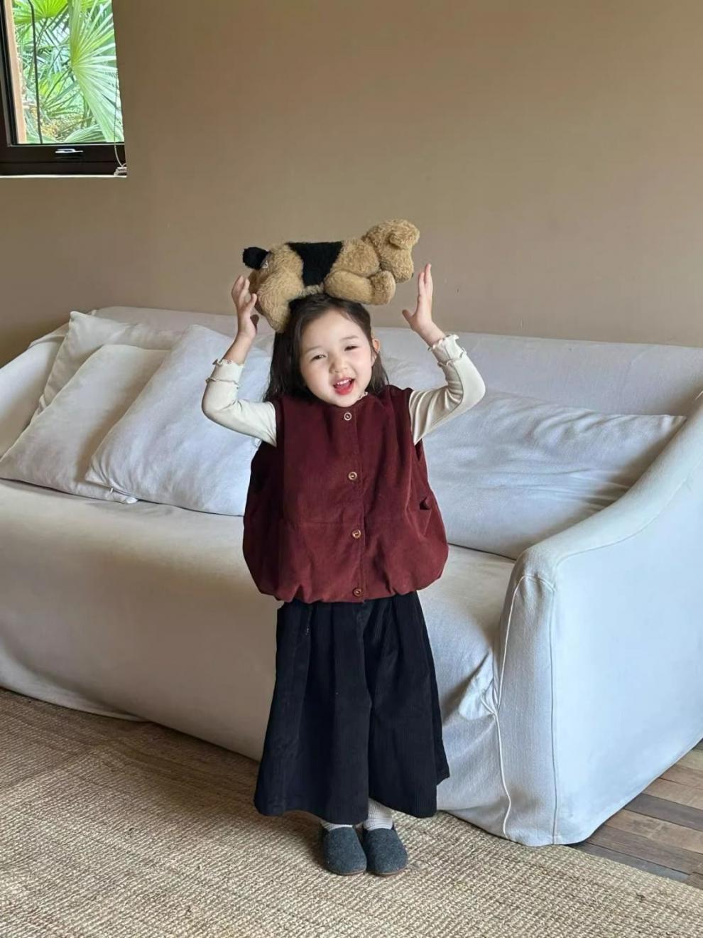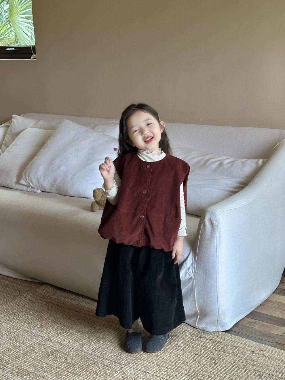 여자 코듀로이 앙고라 레드 조끼 2025 봄 새로운 한국 스타일 아동 의류 유행 유치원 조끼스토어 가기