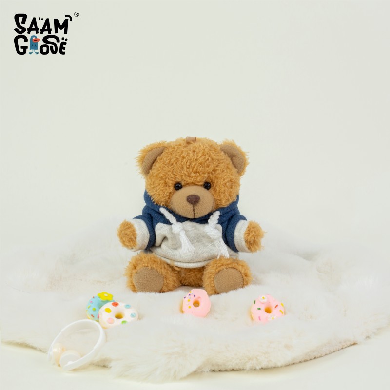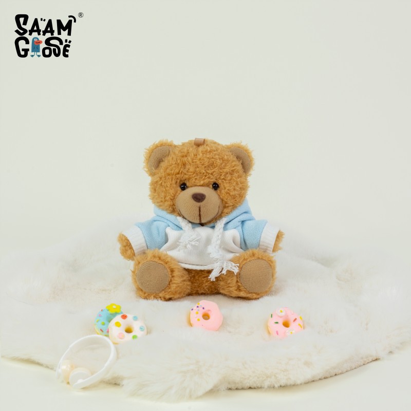 • 하늘색 맨투맨 티셔츠 - 브라운 곰돌이 인형 [11cm]