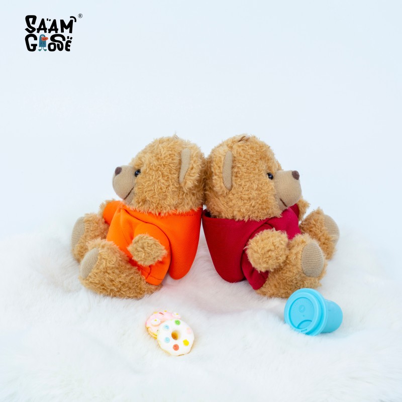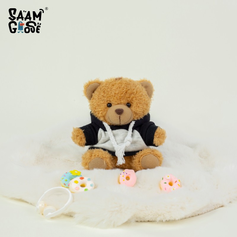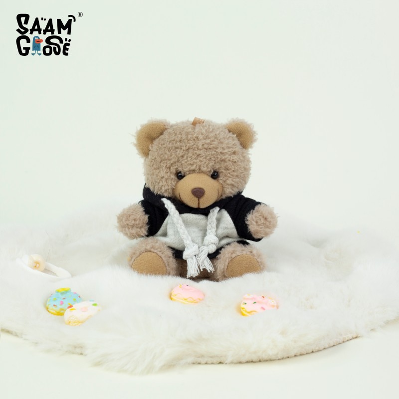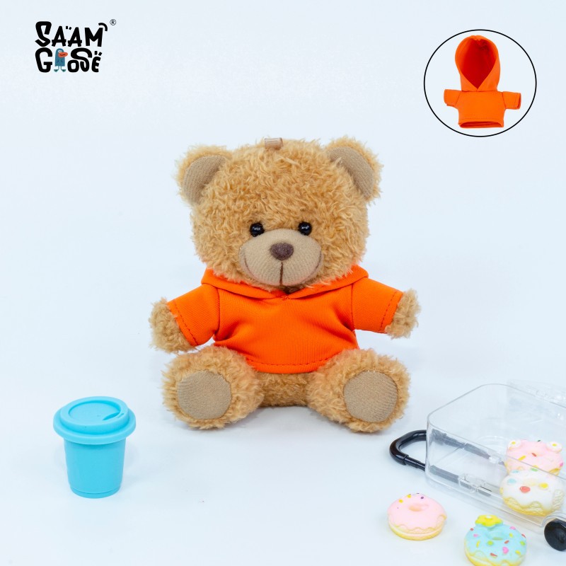 • 오렌지색 후드티 (경량 버전) - 회색 곰돌이 키링 [11cm]