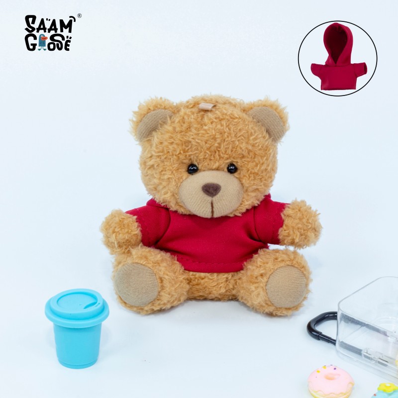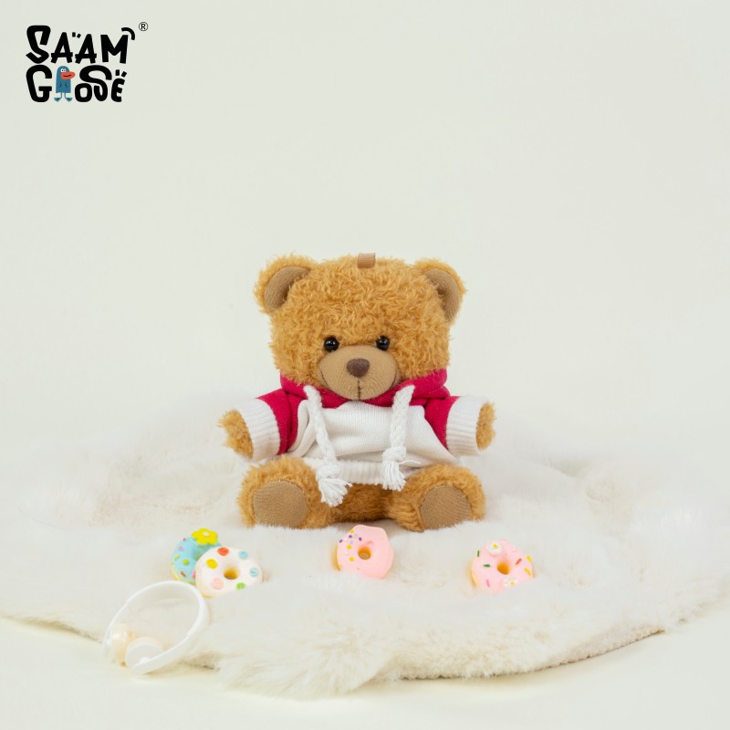 • 빨간색 후드티 (경량 버전) - 회색 곰돌이 키링 [11cm]