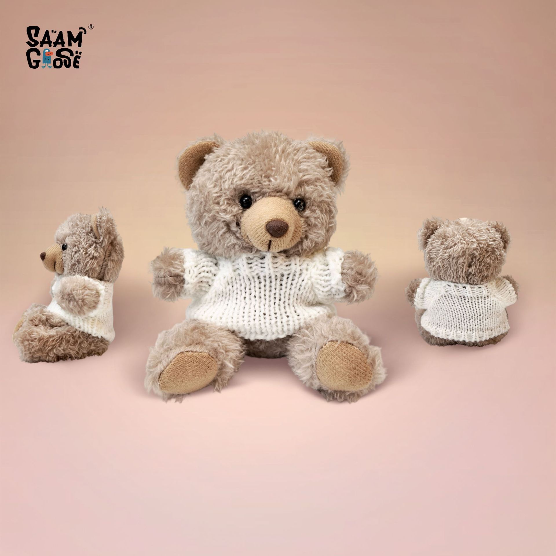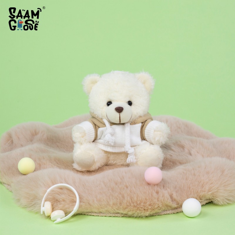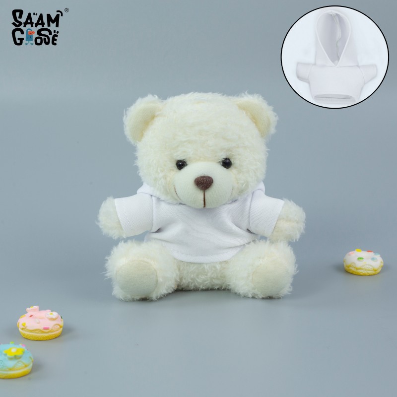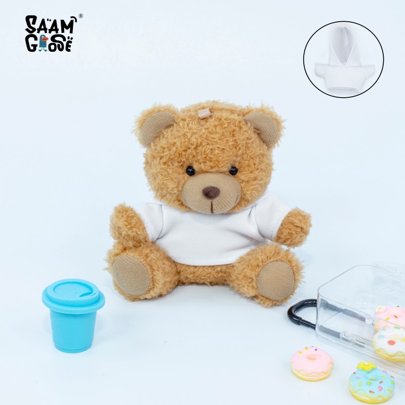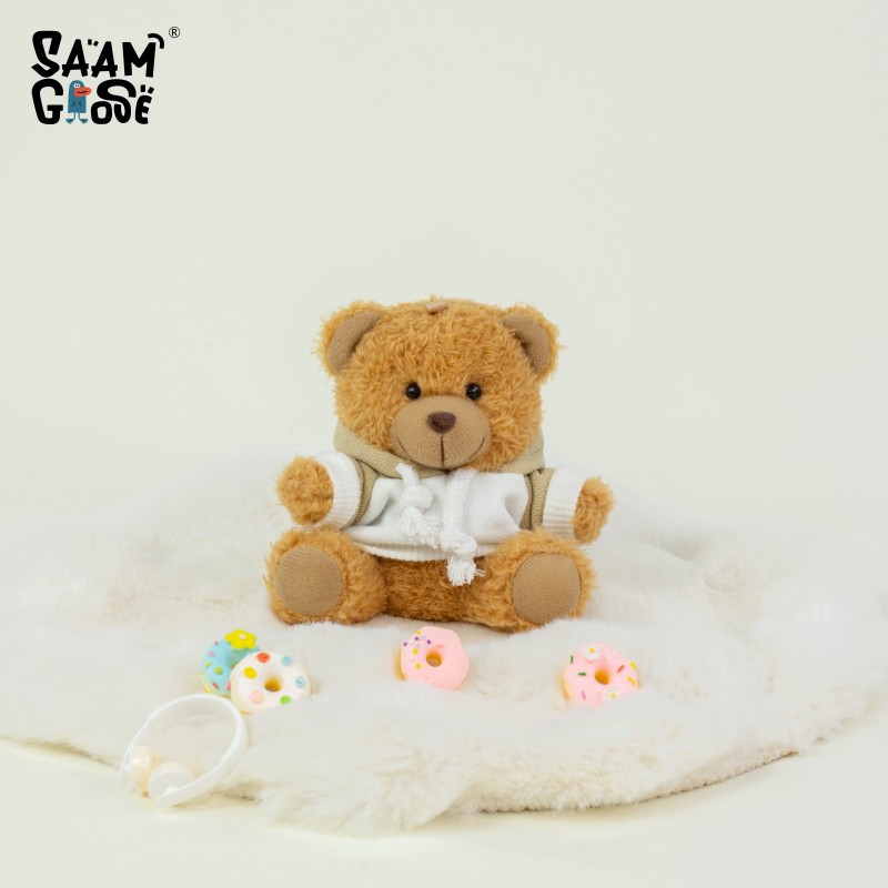 • 흰색 맨투맨 티셔츠 - 브라운 곰돌이 인형 [11cm]