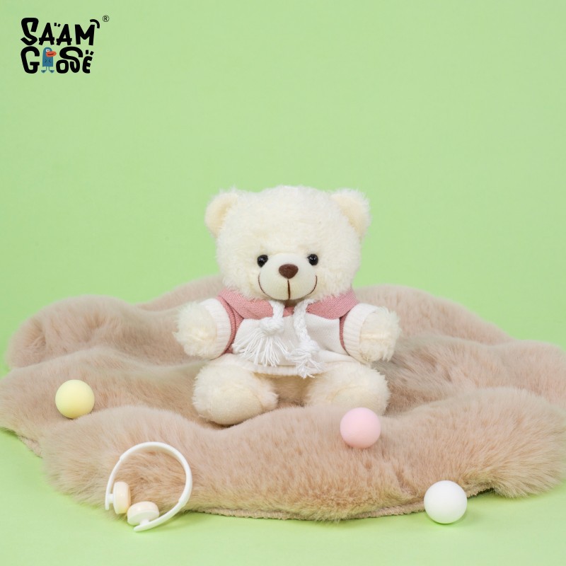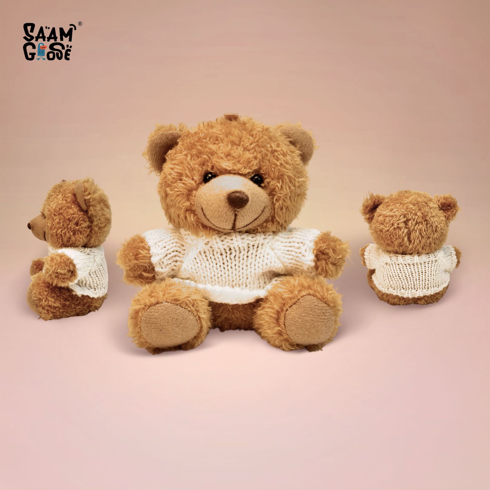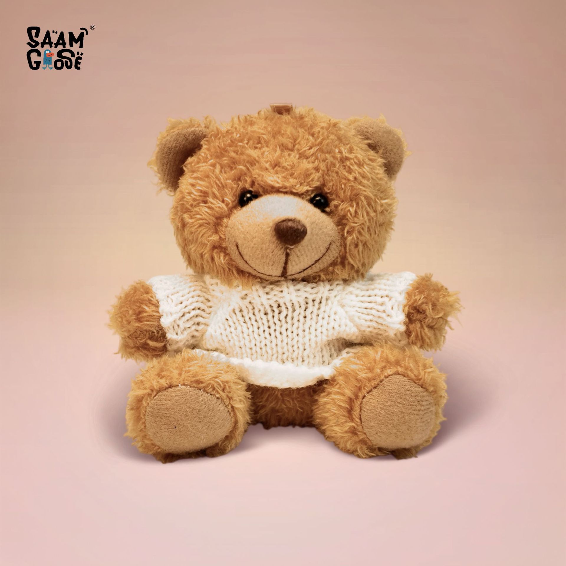 • 흰색 맨투맨 티셔츠 - 브라운 곰돌이 인형 [11cm]