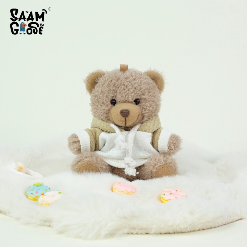 • 흰색 맨투맨 티셔츠 (경량 버전) - 브라운 베어 키링 [11cm]