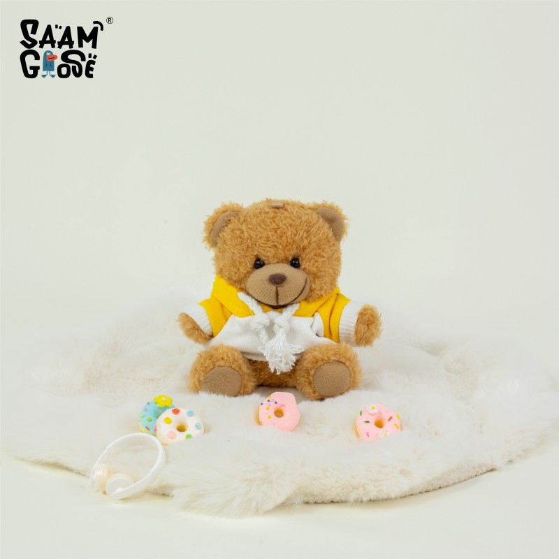 • 노란색 맨투맨 티셔츠 - 브라운 곰돌이 인형 [11cm]
