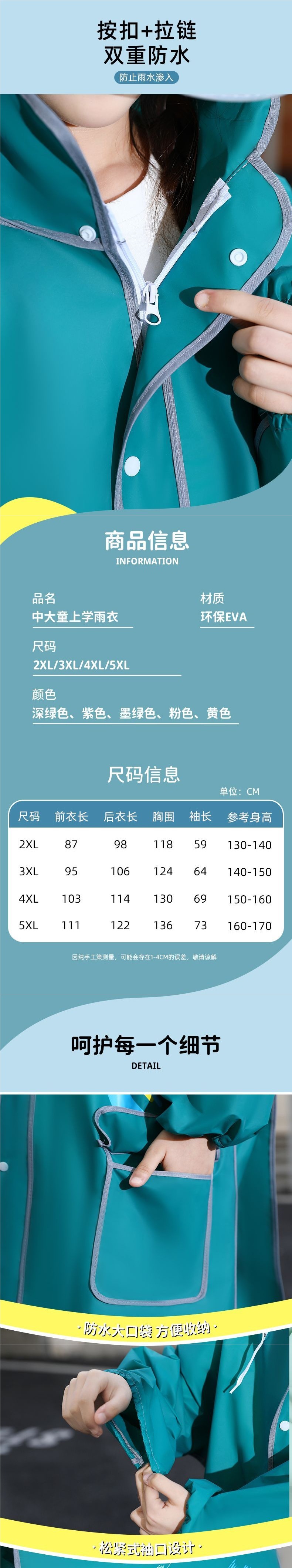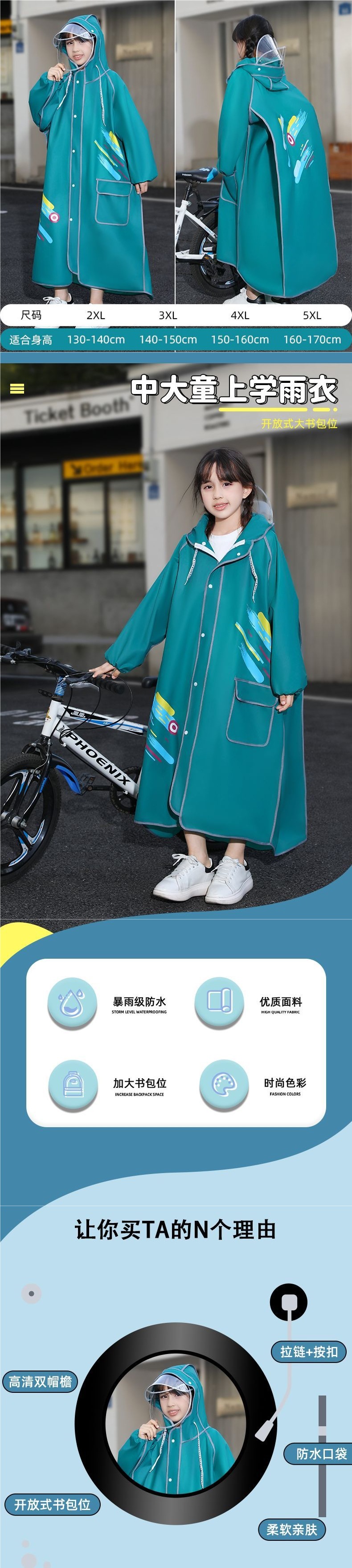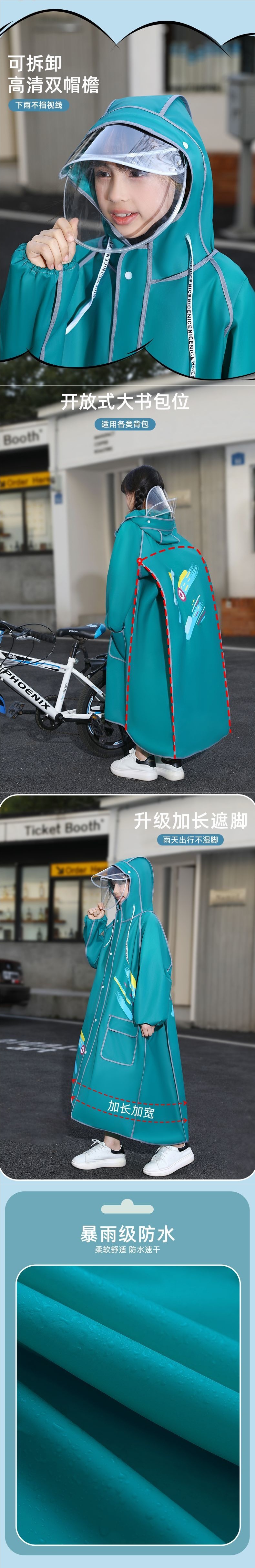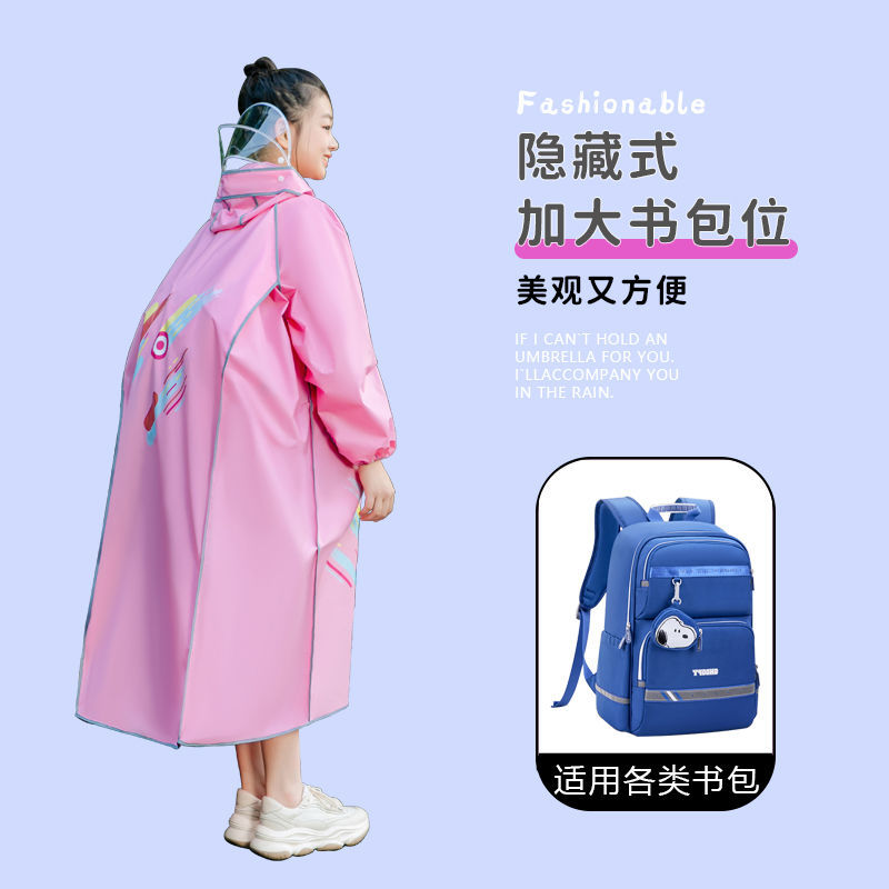 초등학생과 큰 어린이를 위한 어린이용 일체형 비옷, 책가방이 있는 남학생과 여학생을 위한 특수 방수, 사이클링 판초, 방수
