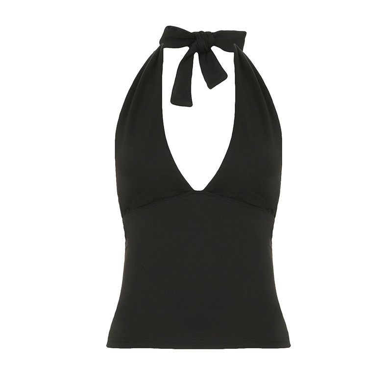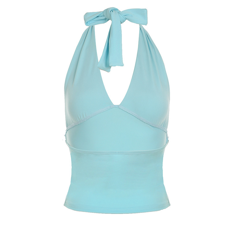 유럽과 미국의 섹시한 핫걸 스타일 솔리드 컬러 홀터넥 조끼 크로스보더 브이넥 슬리밍 다용도 배꼽 노출 짧은 탑스토어 가기