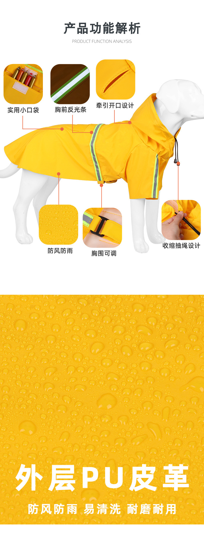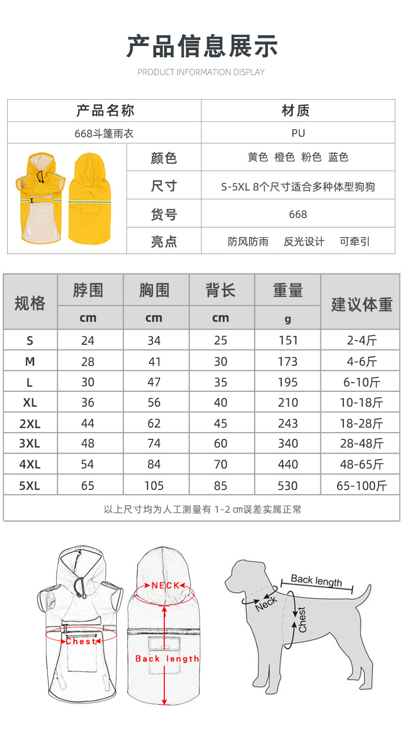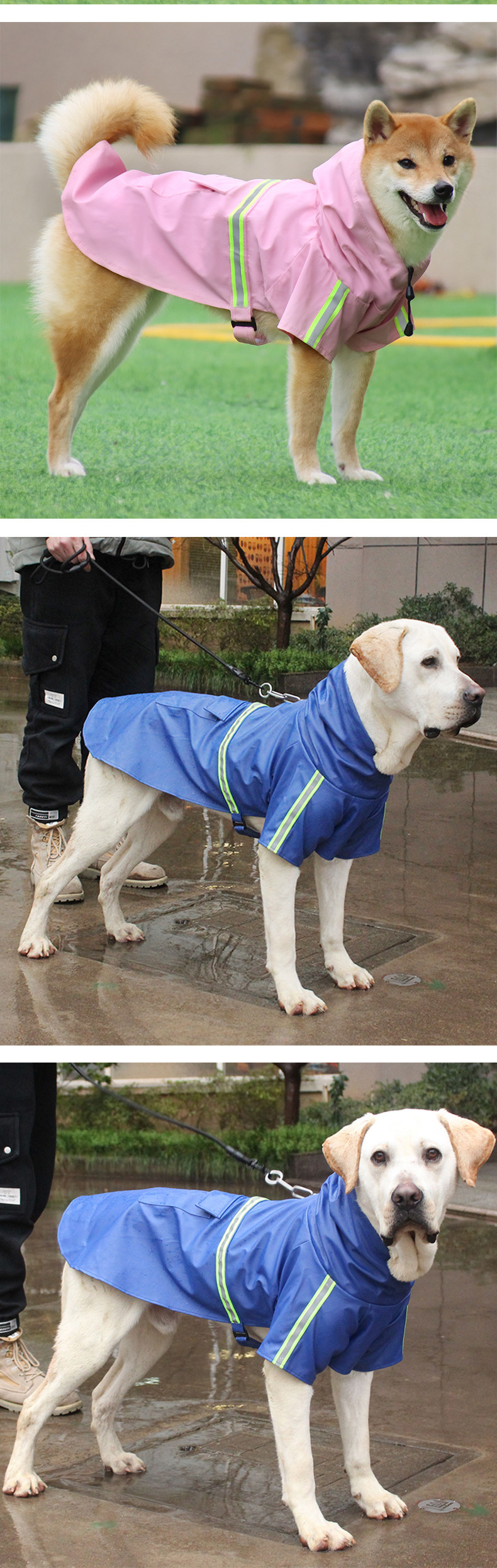 대형 개 비옷 애완 동물 망토 스타일 반사 스트립 애완 동물 비옷 방풍 및 방수 개 후드 비옷 애완 동물 판초스토어 가기