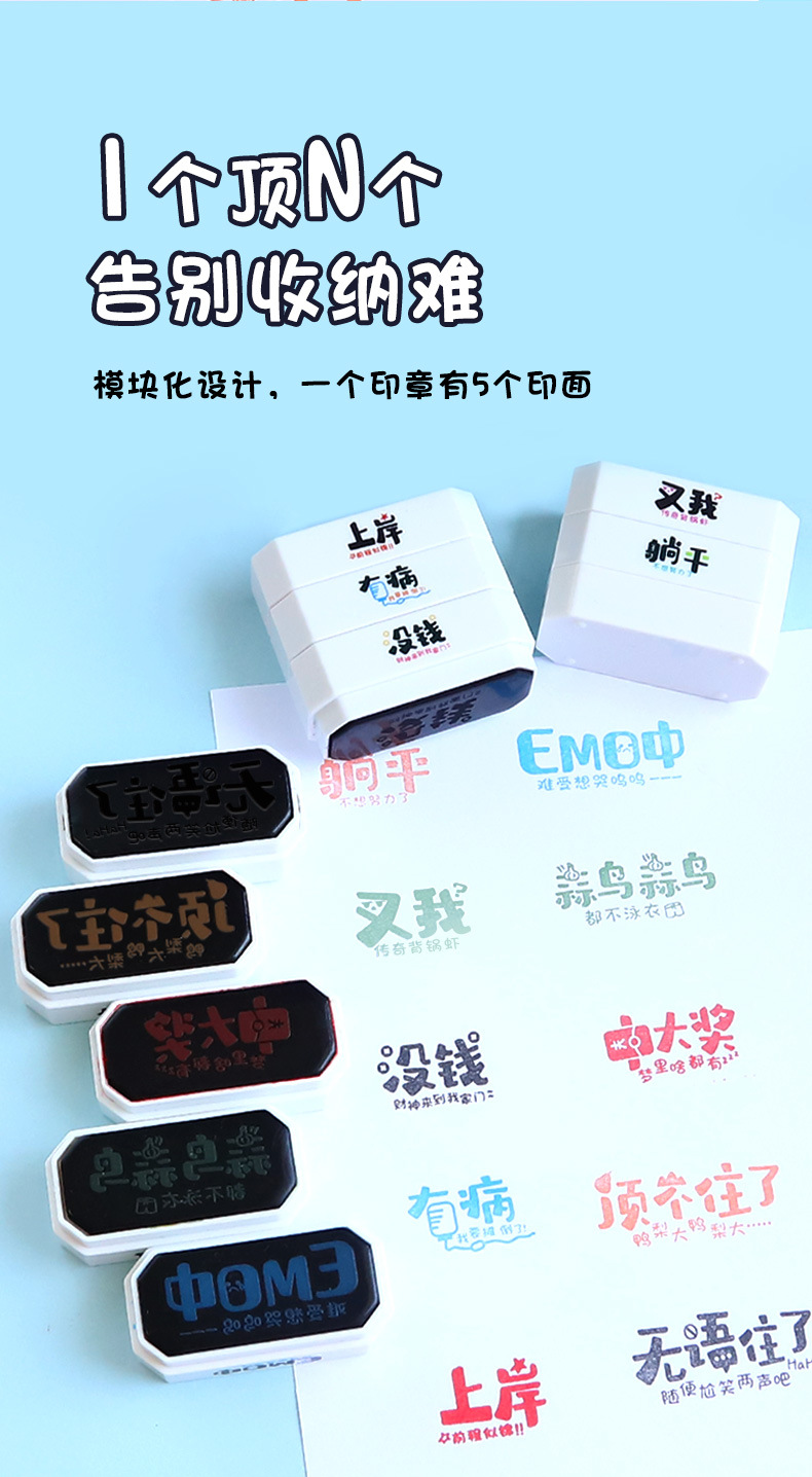핸드북 텍스트 체크인 스탬프, 생활 기분 스탬프, 5가지 기능이 모두 포함된 빌딩 블록, 핸드북 일기 장식스토어 가기