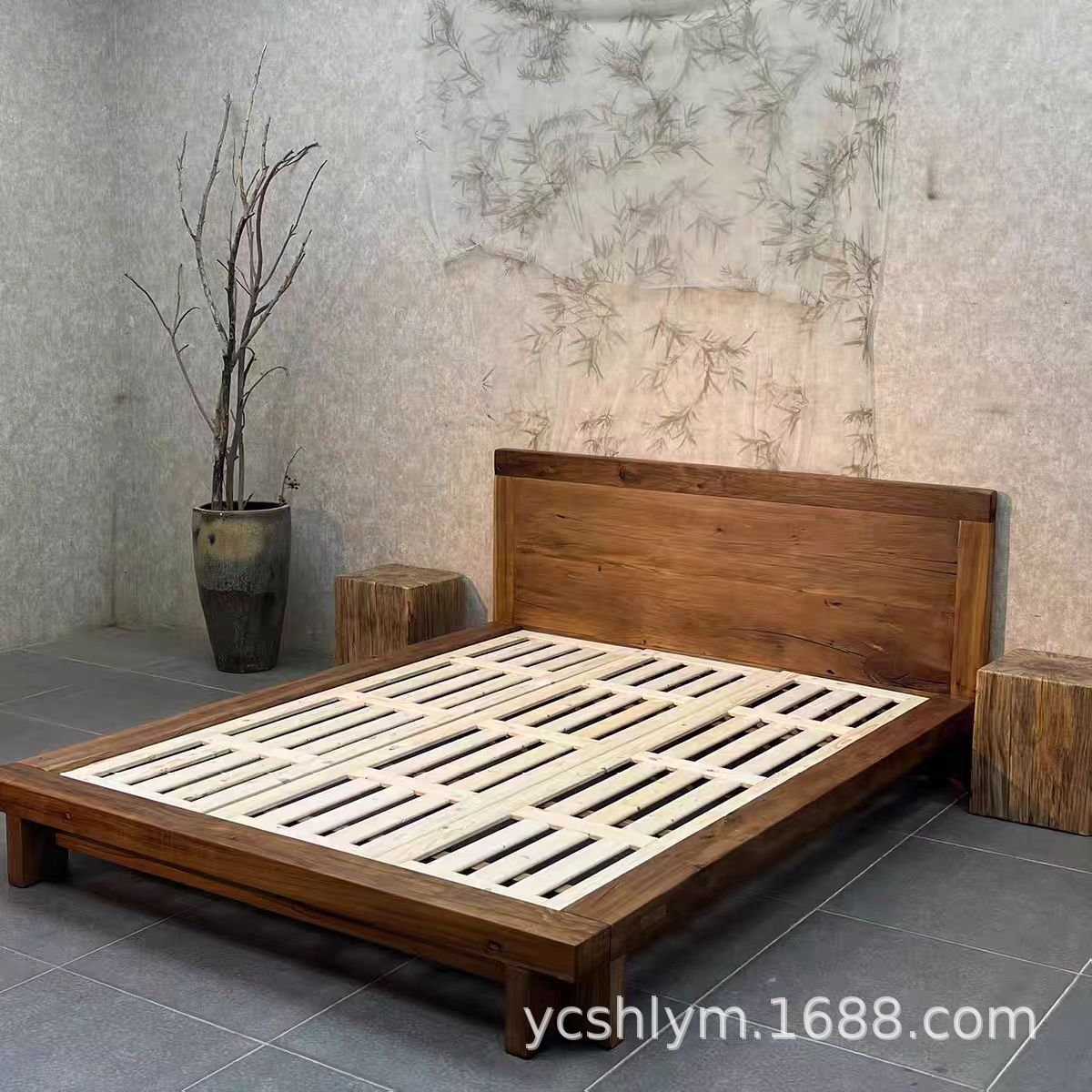 중국 복고풍 올드 느릅나무 침대 복고풍 B&B 오래된 대형 침대 가구 느릅나무 침대 홈 마스터 침실 더블 침대스토어 가기