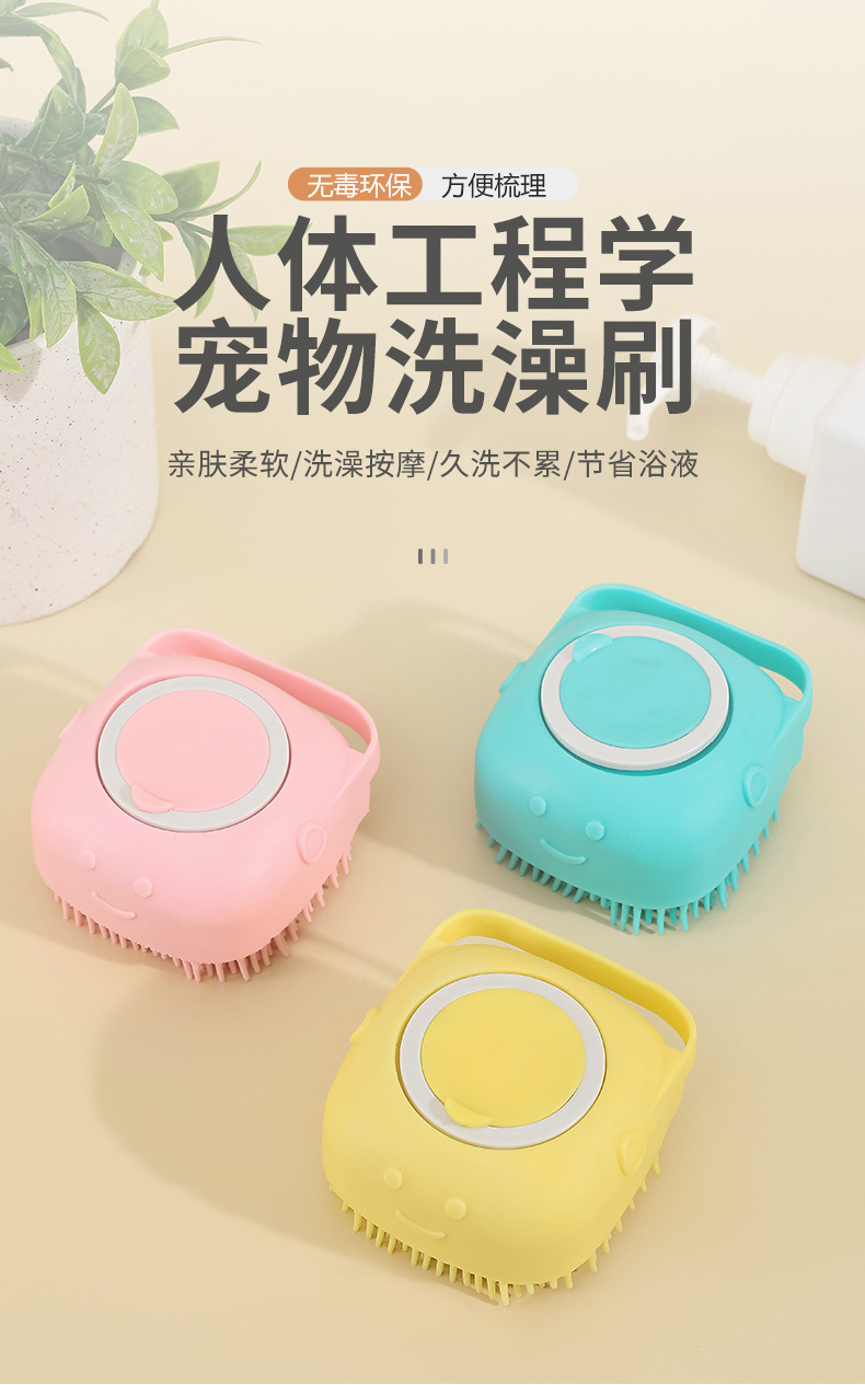애완동물을 위한 강아지 실리콘 마사지 브러시, 샤워젤, 마사지 및 목욕용품, 부드러운 강모 브러시
