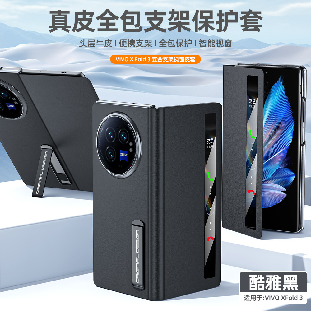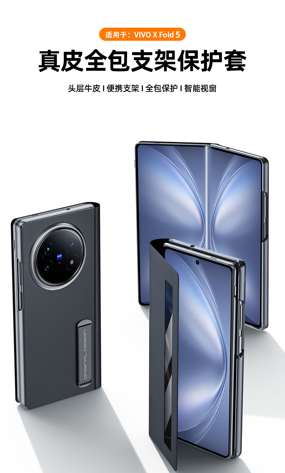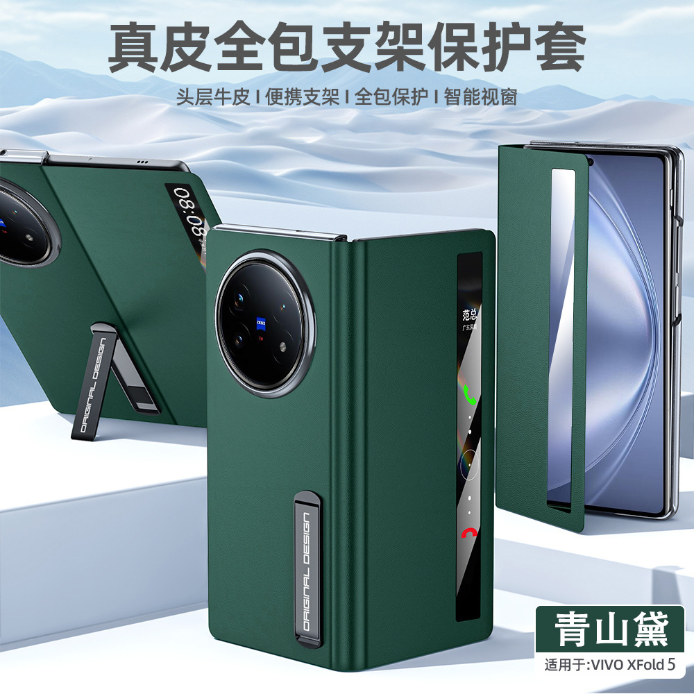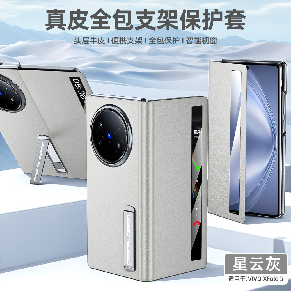 VIVOXFold5 가죽 케이스에 적합 휴대폰 케이스 초박형 진짜 소가죽 나파 핀홀 패턴 스탠드 XFold3 보호 케이스스토어 가기