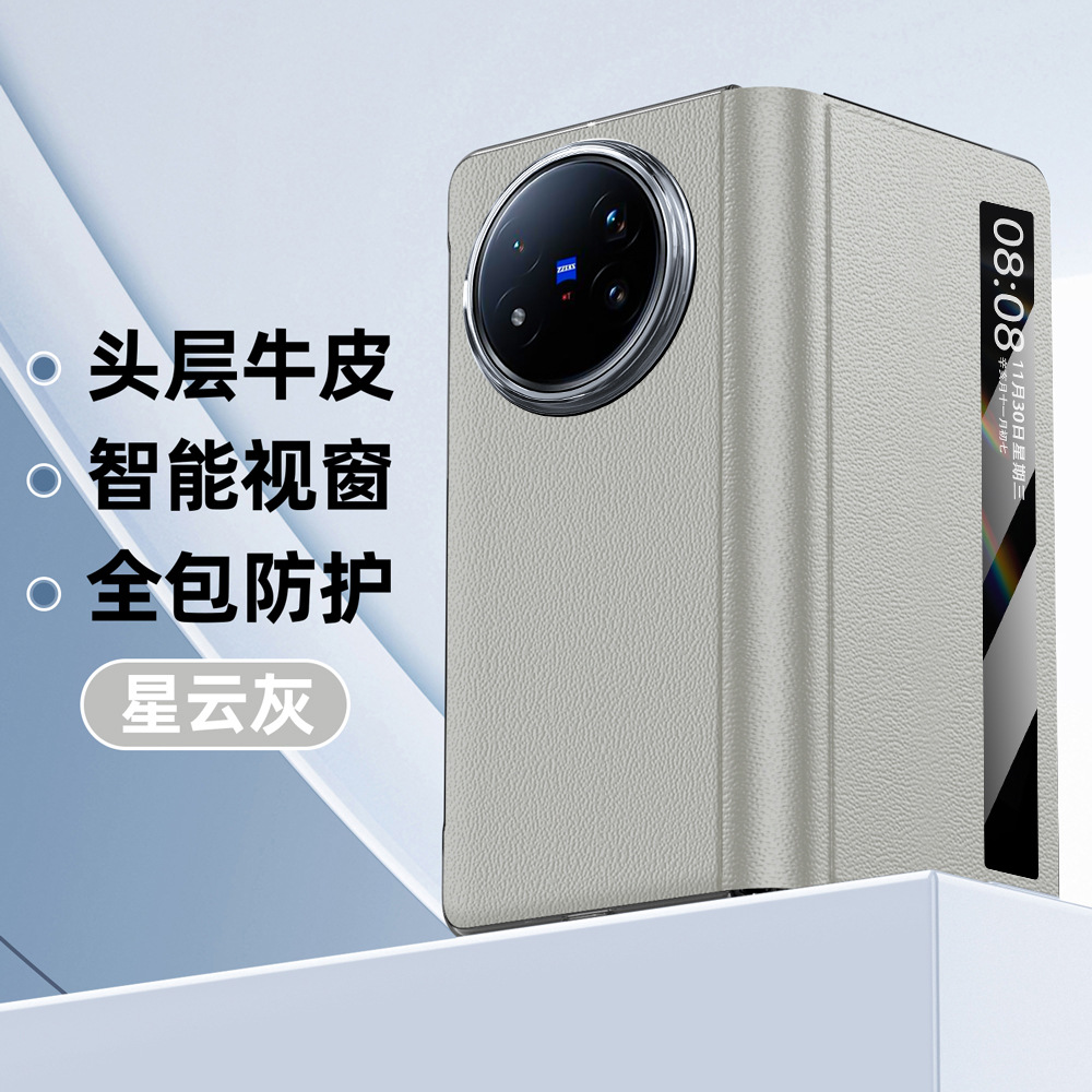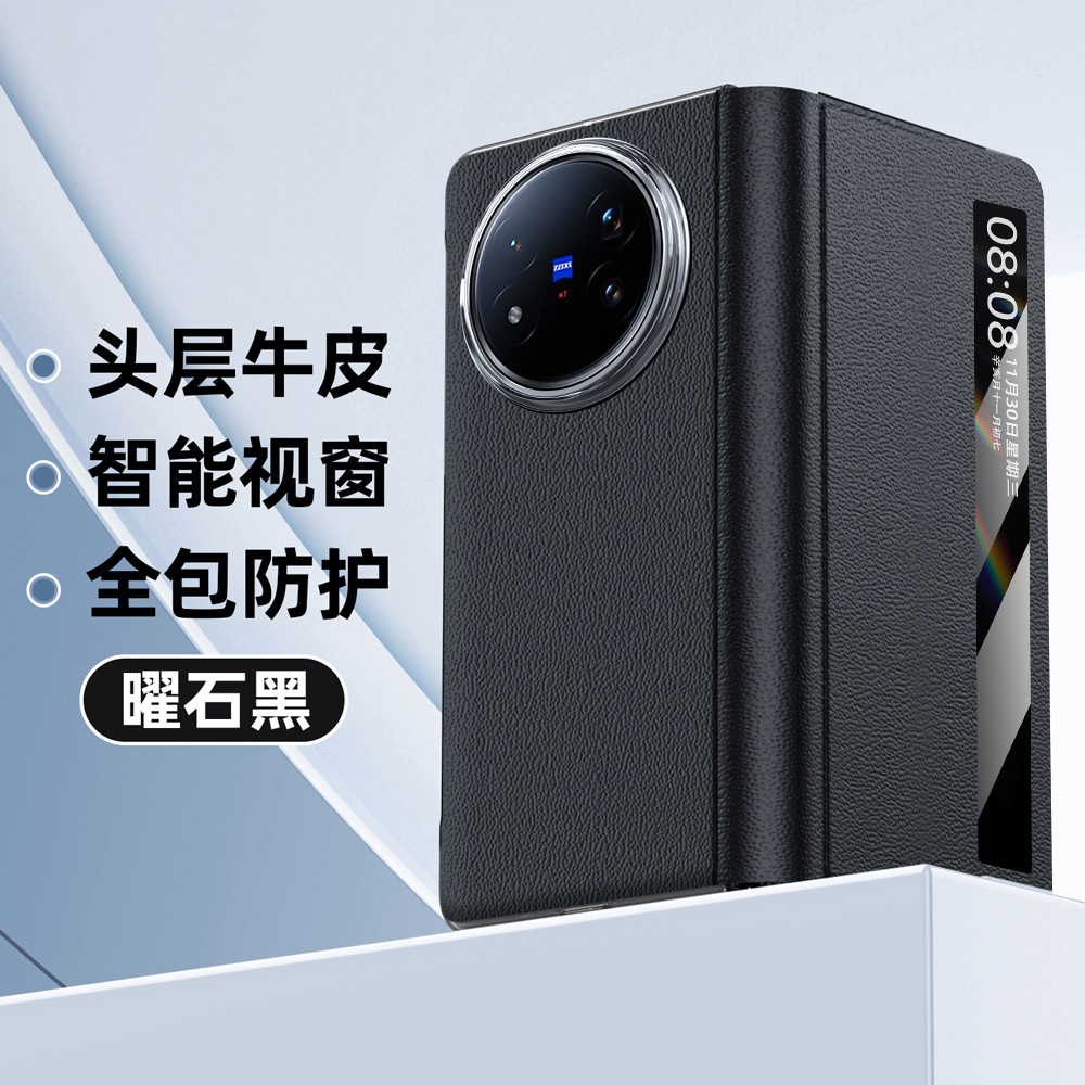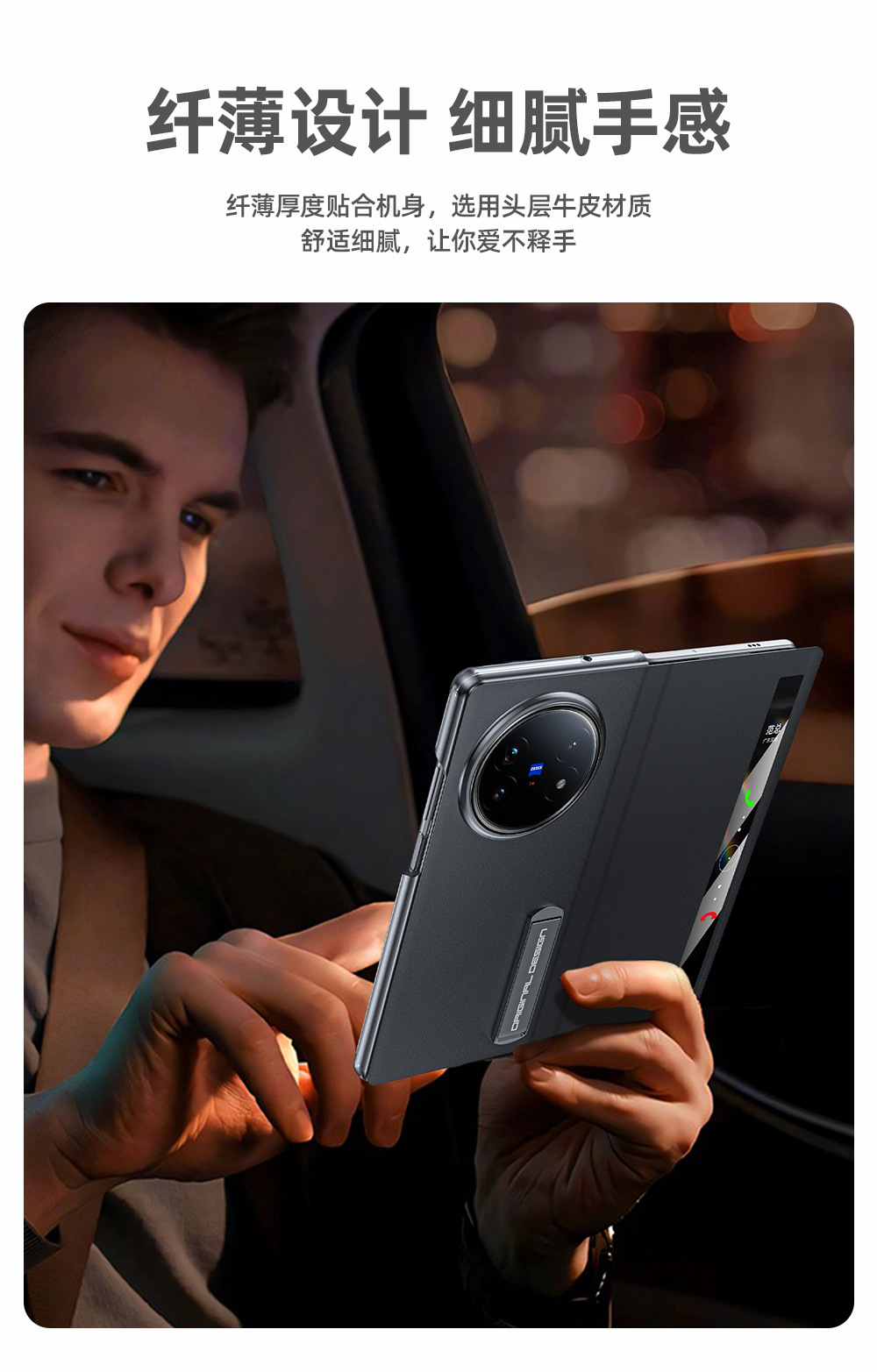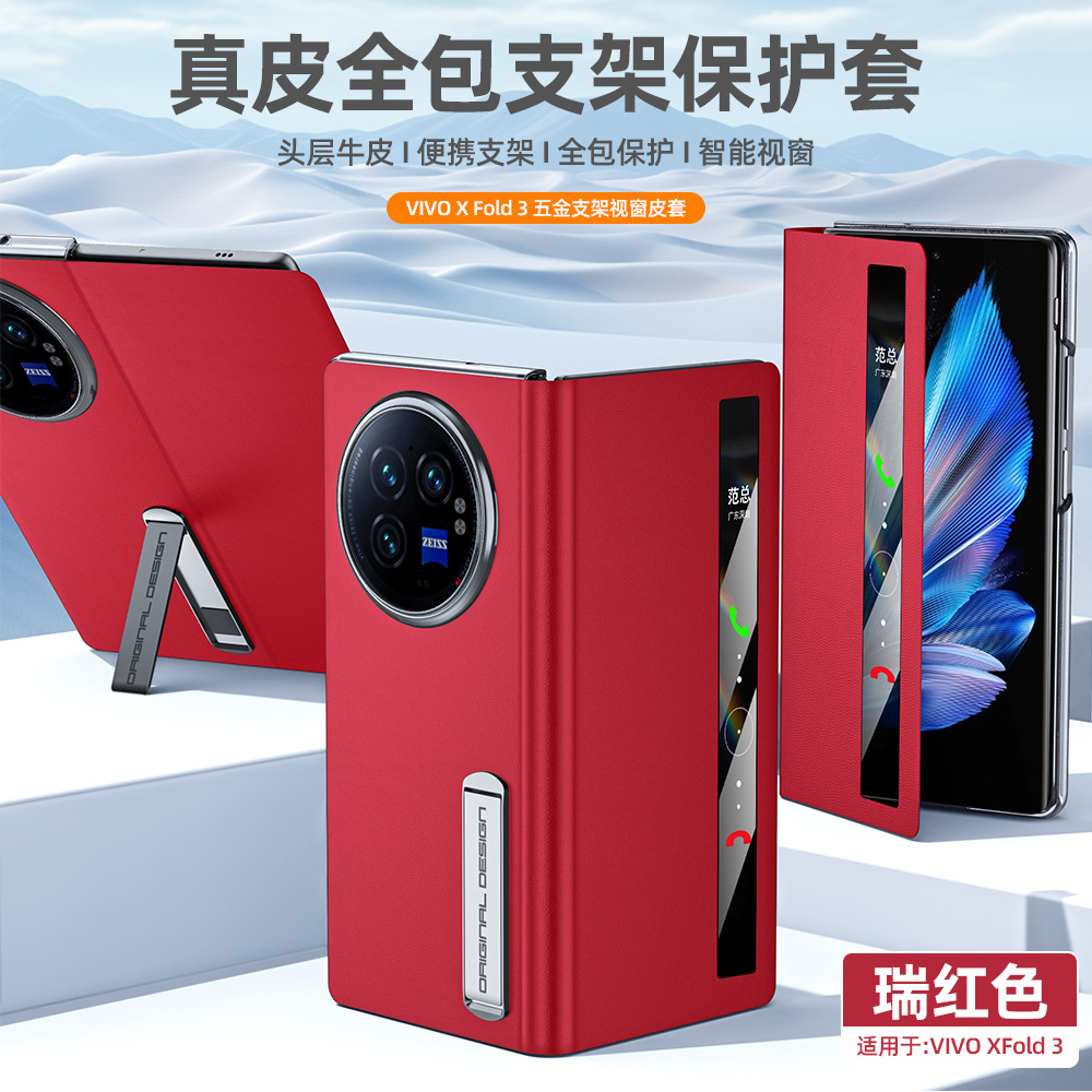 VIVOXFold5 가죽 케이스에 적합 휴대폰 케이스 초박형 진짜 소가죽 나파 핀홀 패턴 스탠드 XFold3 보호 케이스스토어 가기