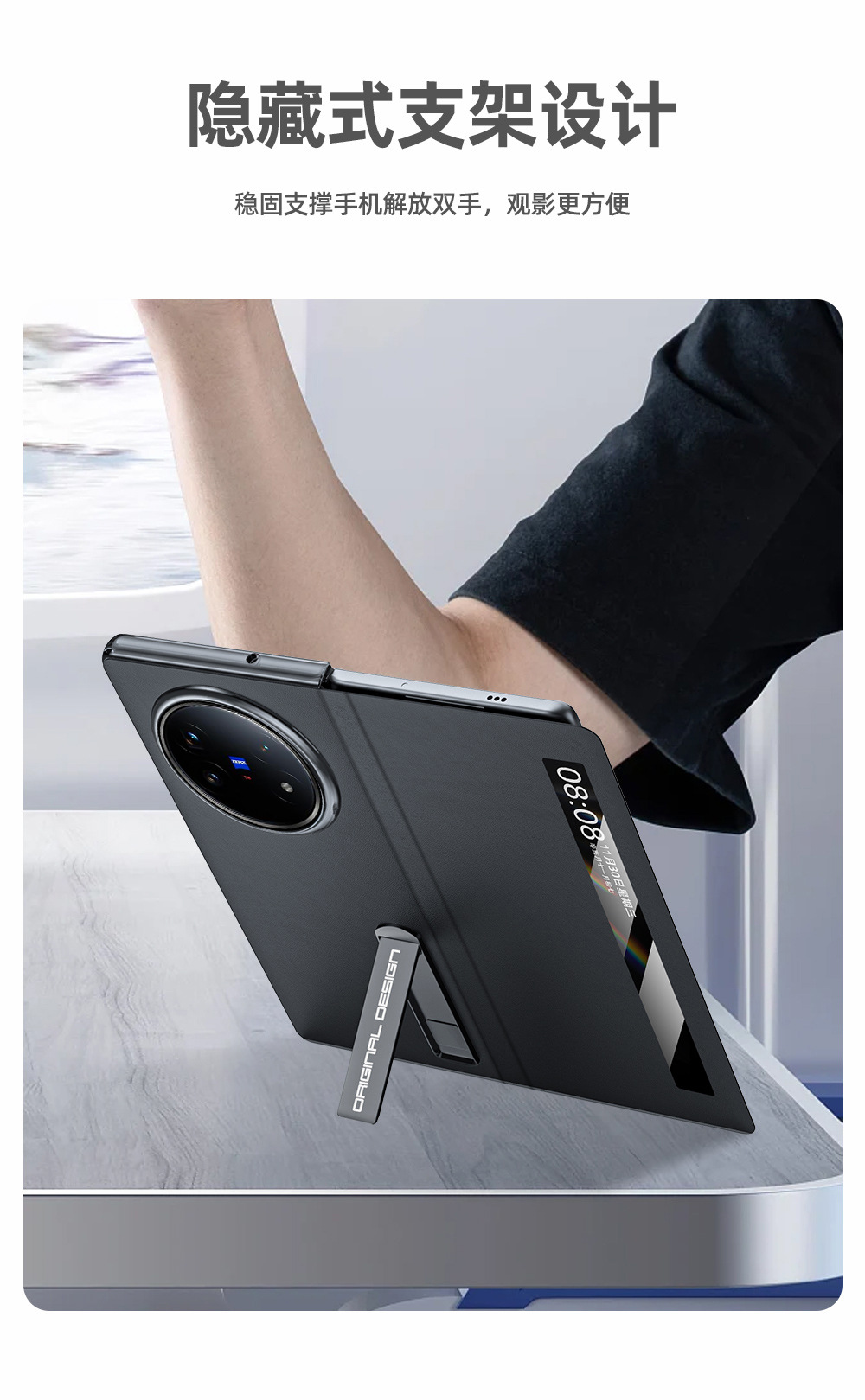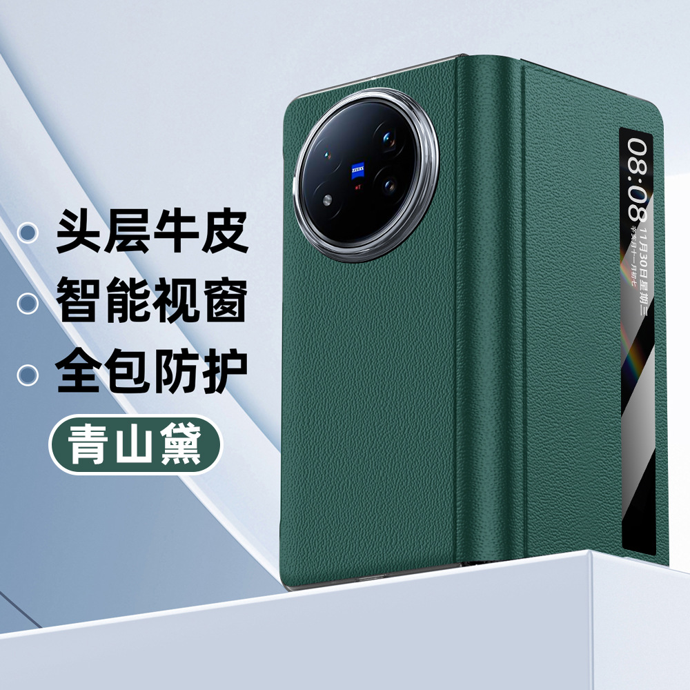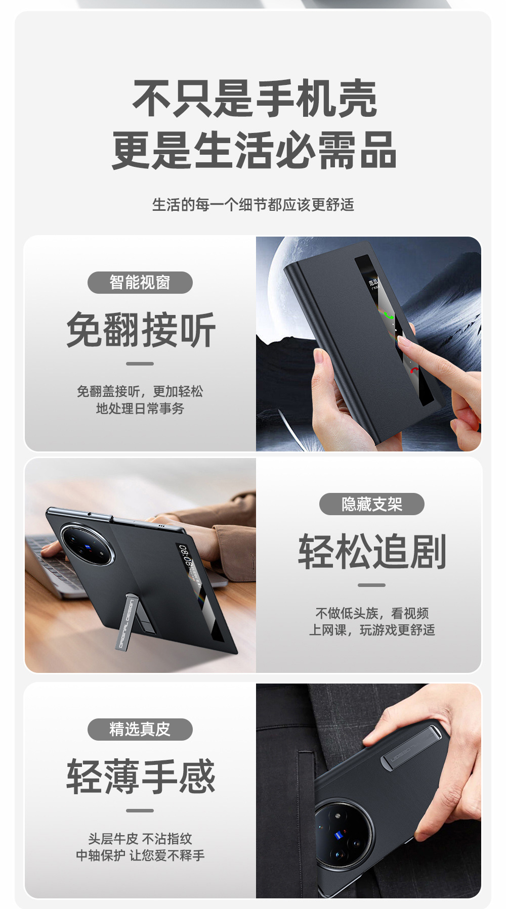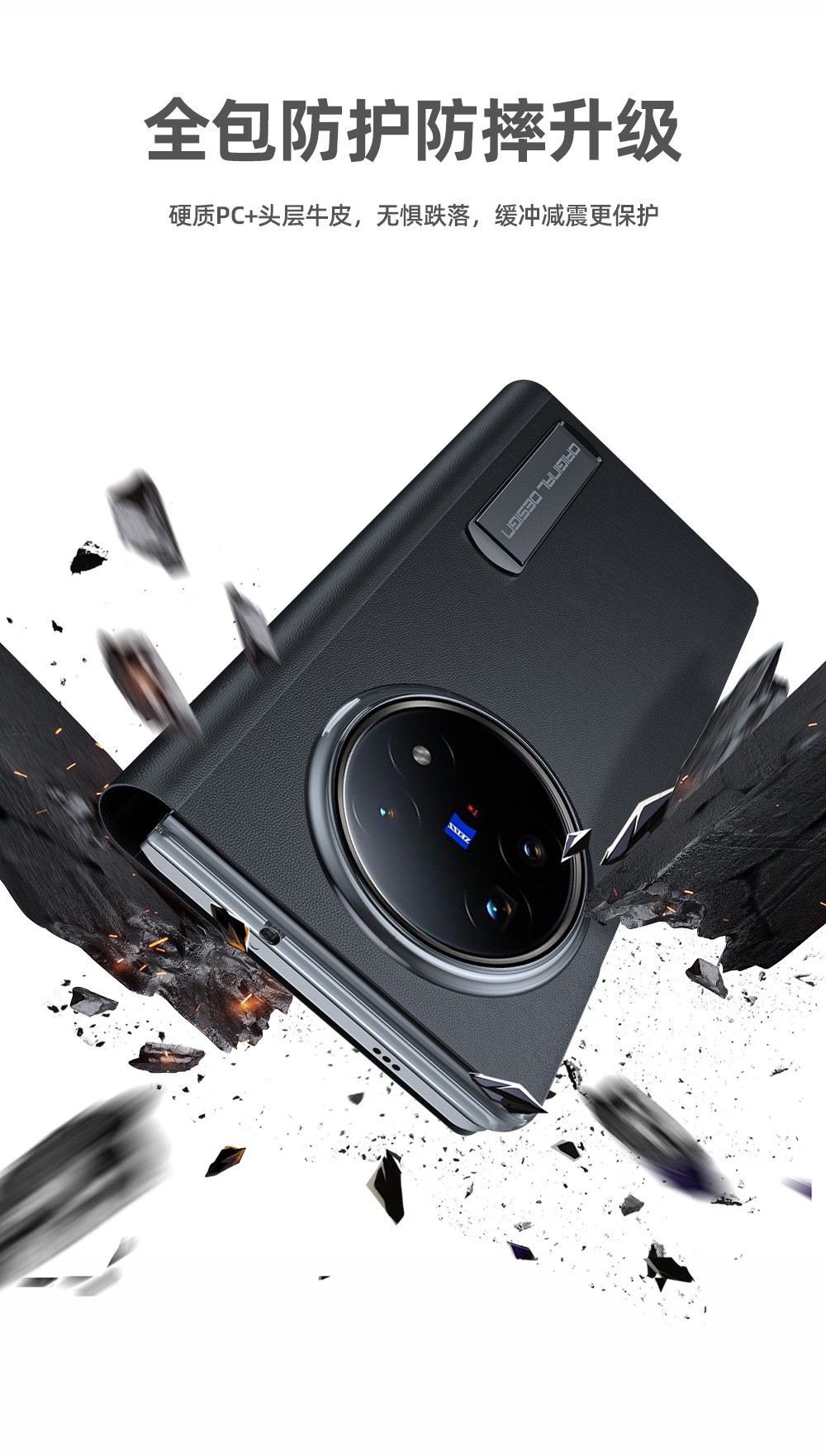 VIVOXFold5 가죽 케이스에 적합 휴대폰 케이스 초박형 진짜 소가죽 나파 핀홀 패턴 스탠드 XFold3 보호 케이스스토어 가기
