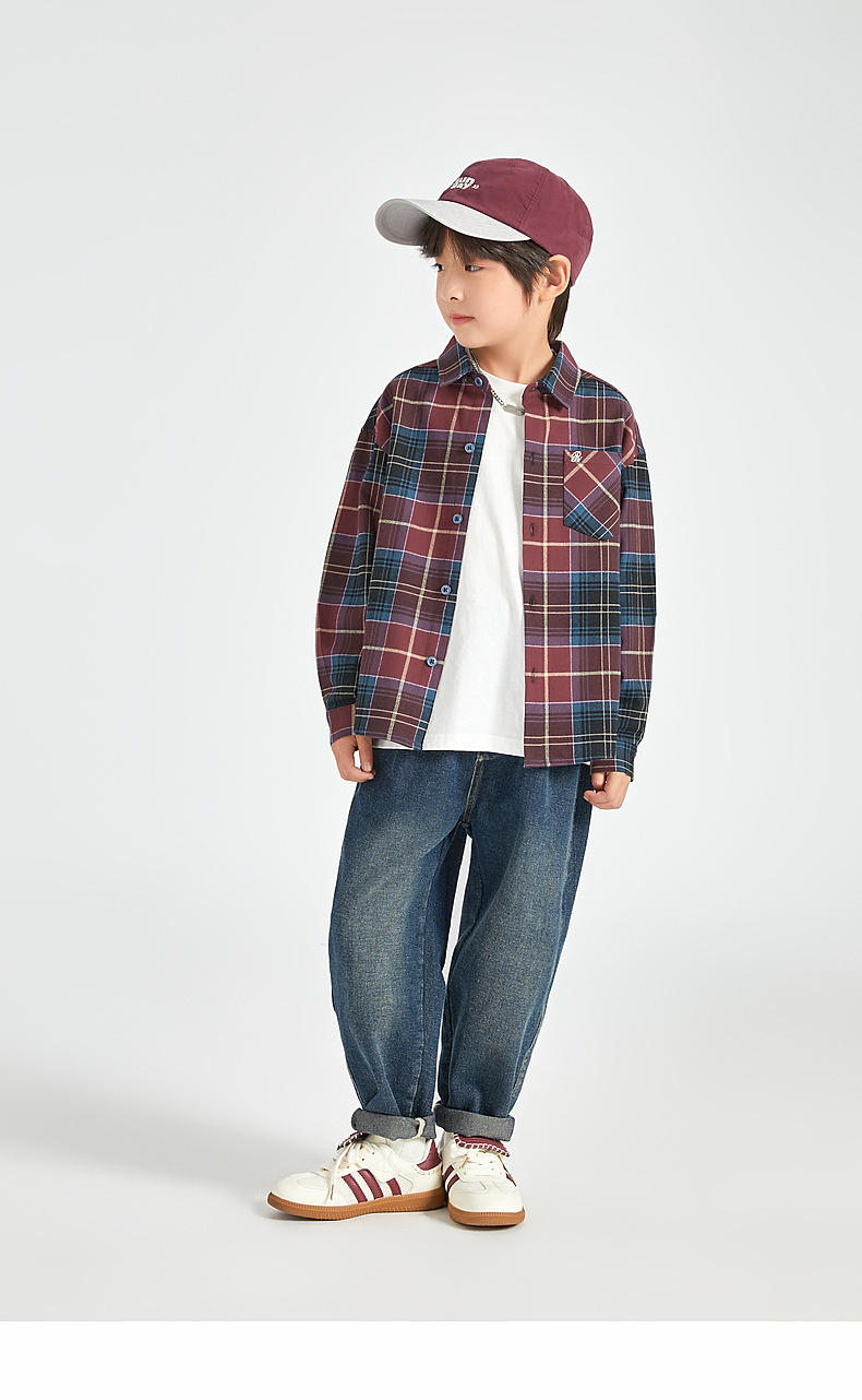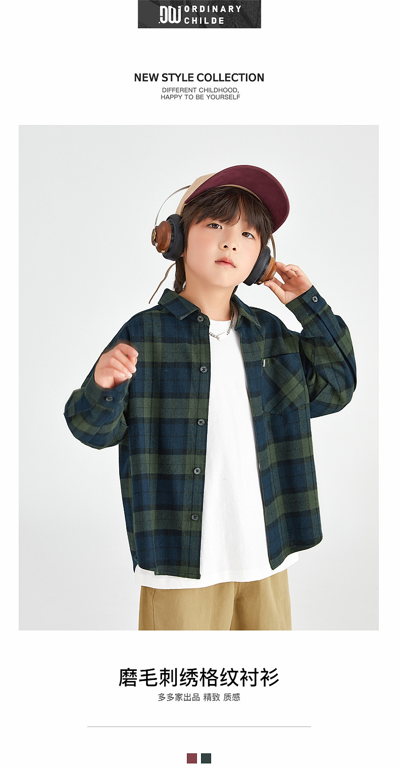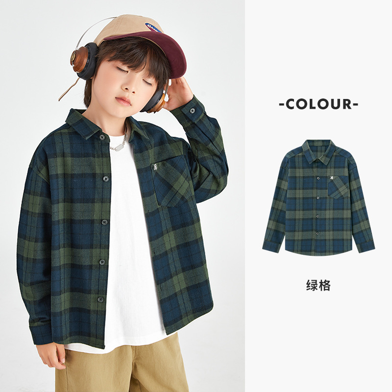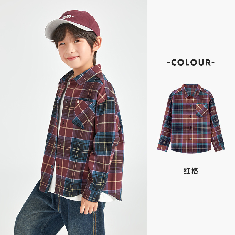 Duojia 소년 셔츠, 기모 처리된 피부 느낌, 봄과 가을 복고풍 격자 무늬 탑, 중대형 어린이 순면 재킷스토어 가기
