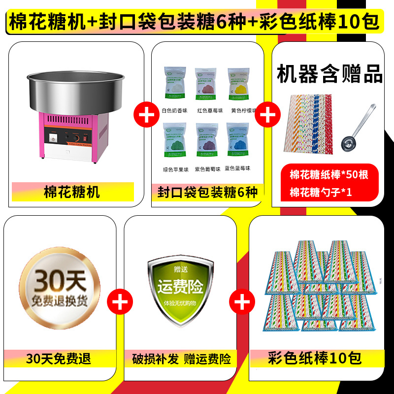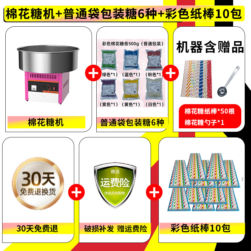 • 업그레이드된 마시멜로 기계 + 일반 봉지 포장 설탕 6종/팩당 500g + 색종이 스틱 10팩/500개