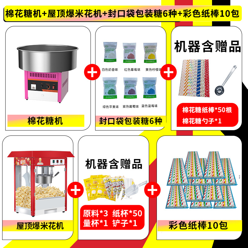 • 마시멜로 기계 + 지붕 팝콘 기계 + 밀봉 봉지 포장 설탕 6종/팩당 1000g + 색종이 스틱 10팩/500스틱