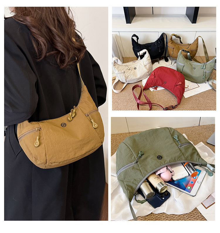 새로운 나일론 소재 크로스바디 숄더백 여성용 2025년 니치 디자인 달 모양 핸드백스토어 가기