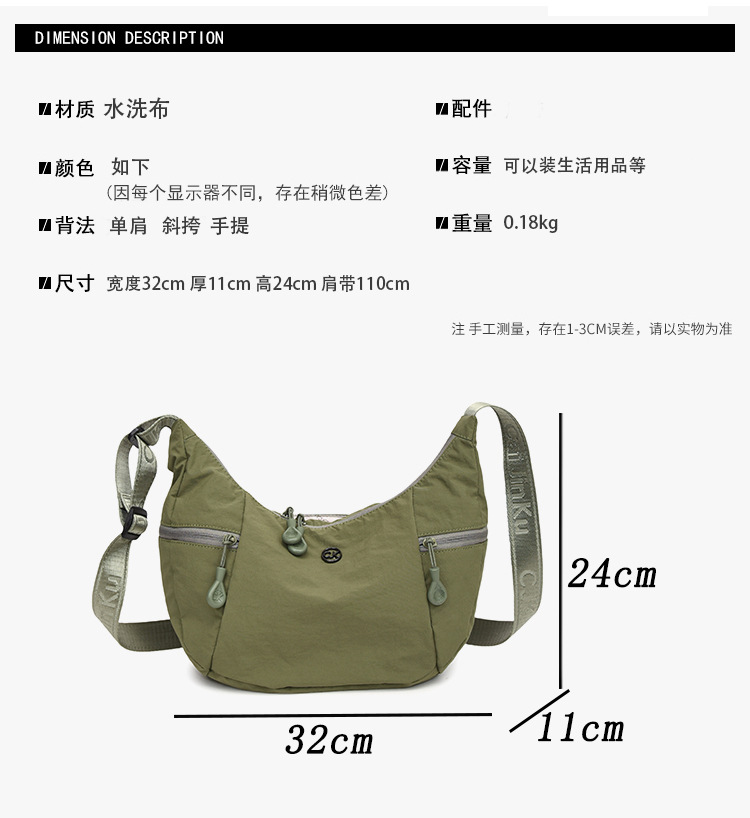 새로운 나일론 소재 크로스바디 숄더백 여성용 2025년 니치 디자인 달 모양 핸드백