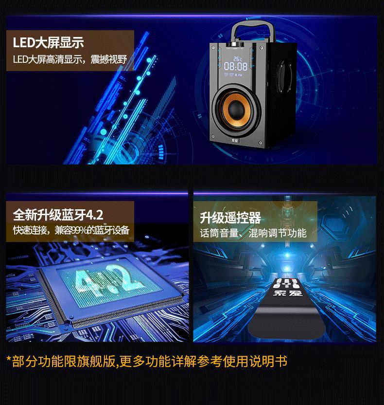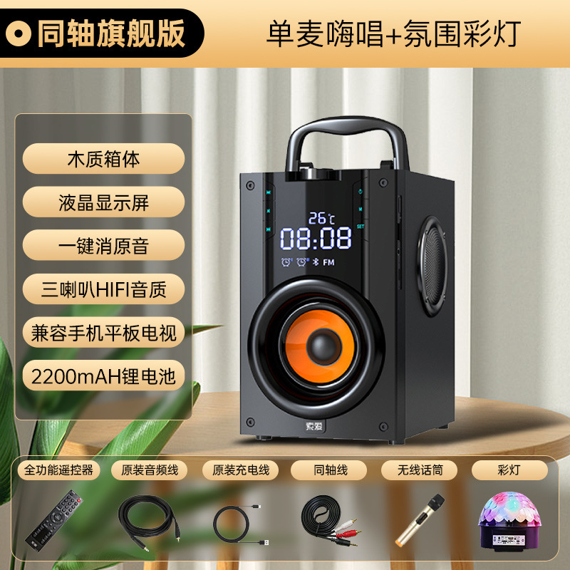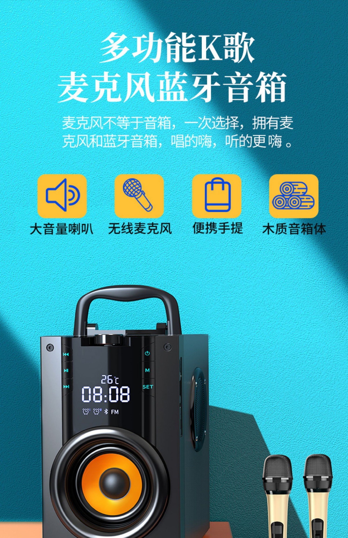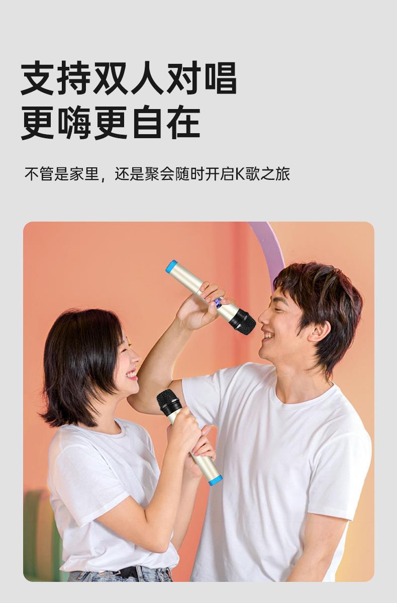 • 쿨 블랙 더블 마이크 + 주변 조명 [KTV 음향 효과 + 나무 상자 + 내장 리튬 배터리 + 전체 기능 리모콘]