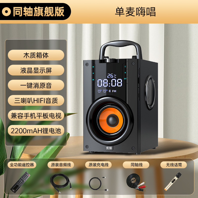 • 쿨 블랙 싱글 마이크 [KTV 음향 효과 + 나무 상자 + 내장 리튬 배터리 + 전체 기능 리모콘]