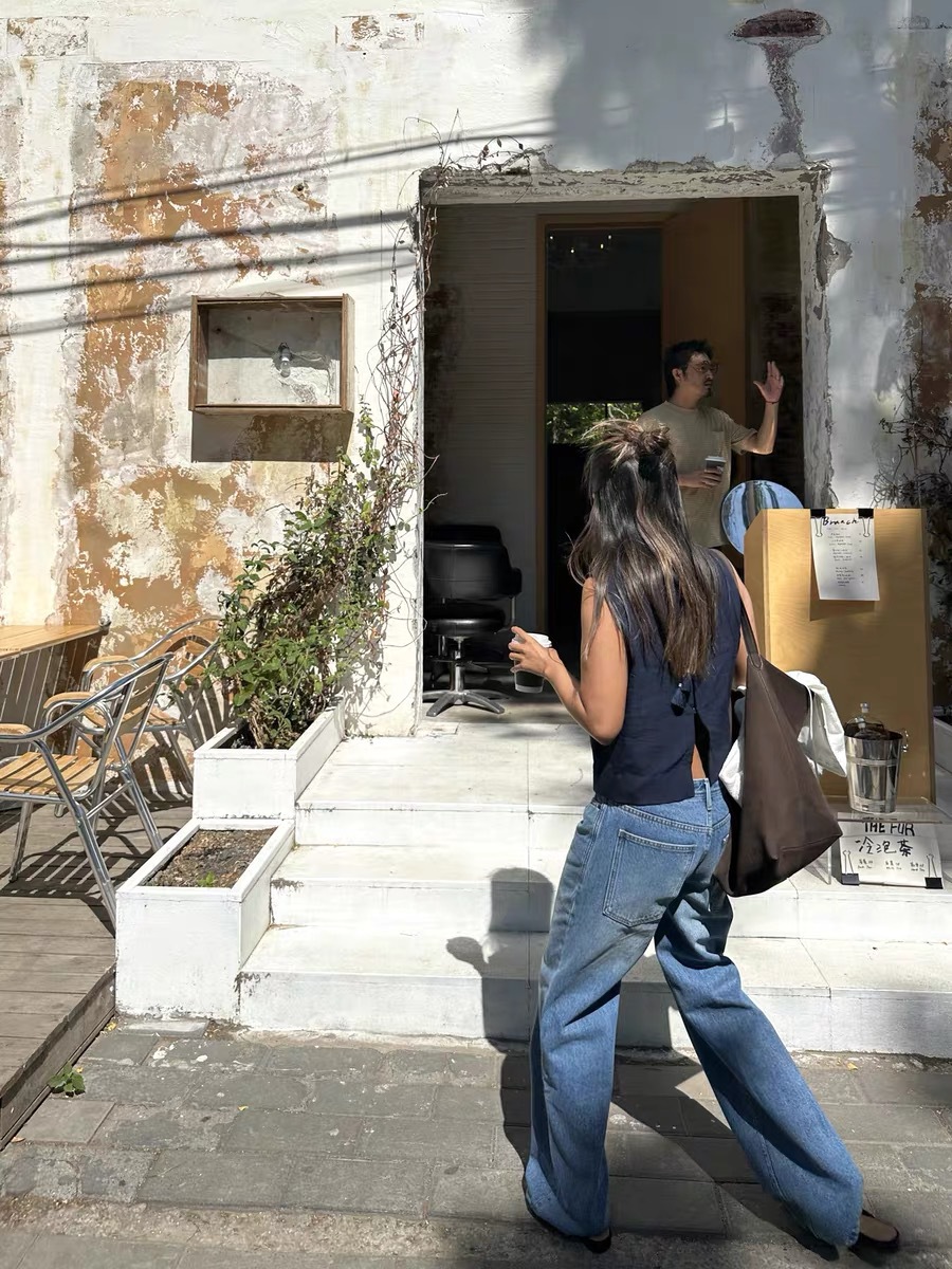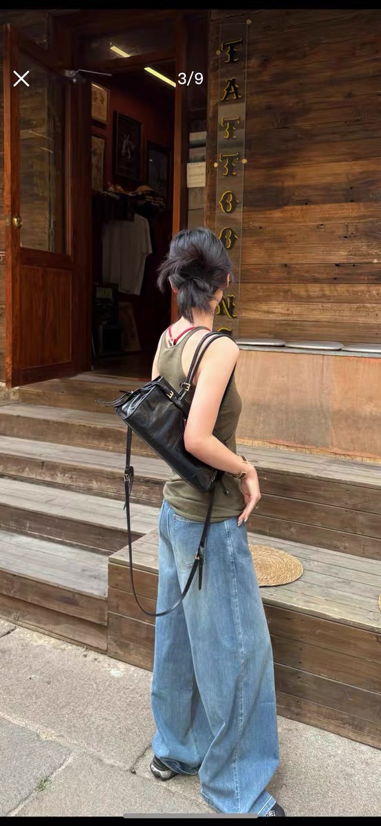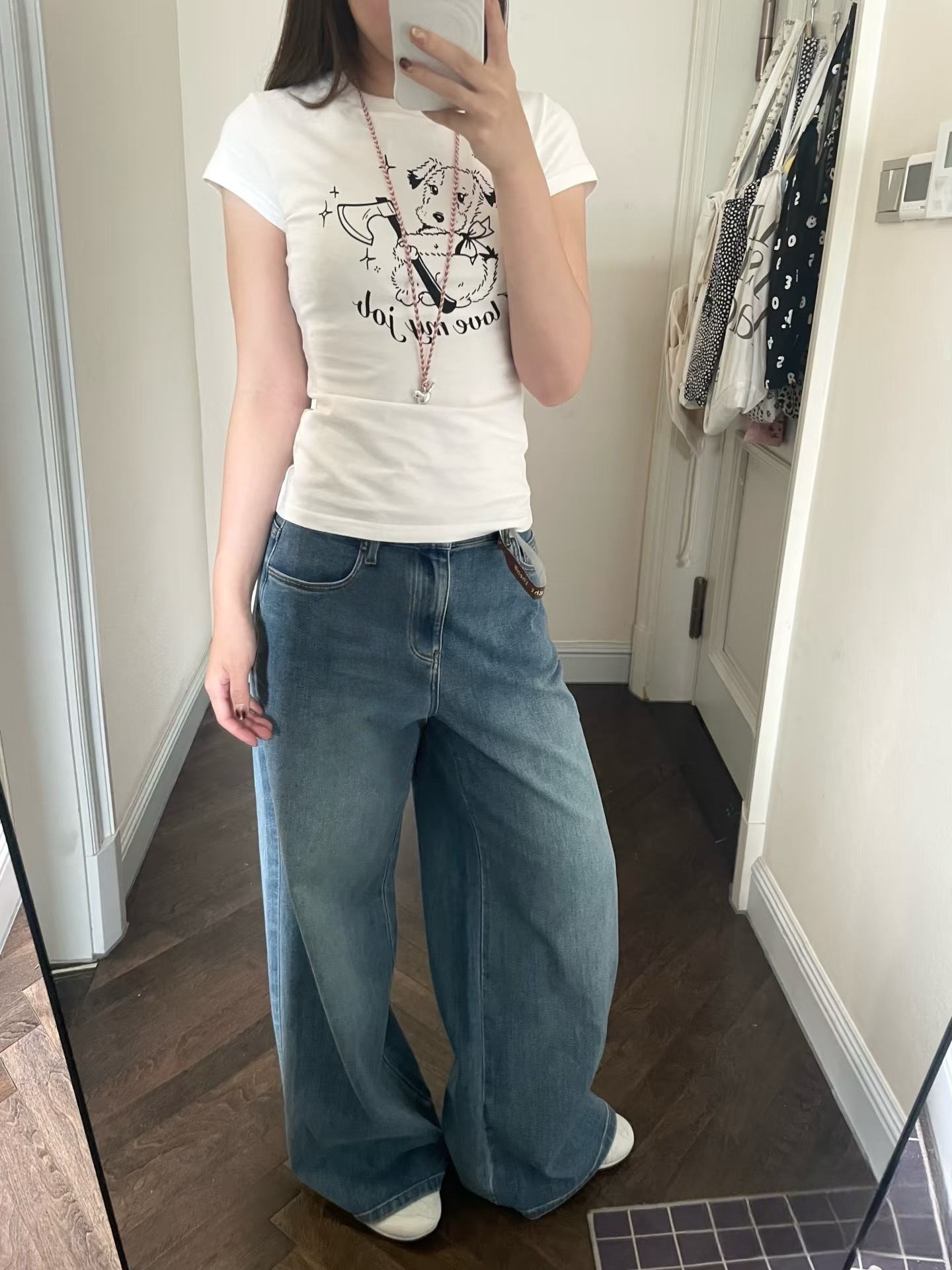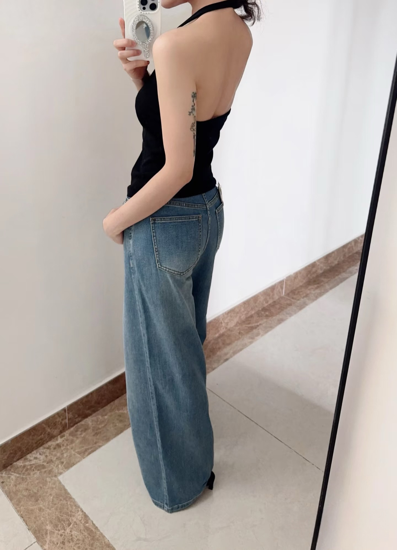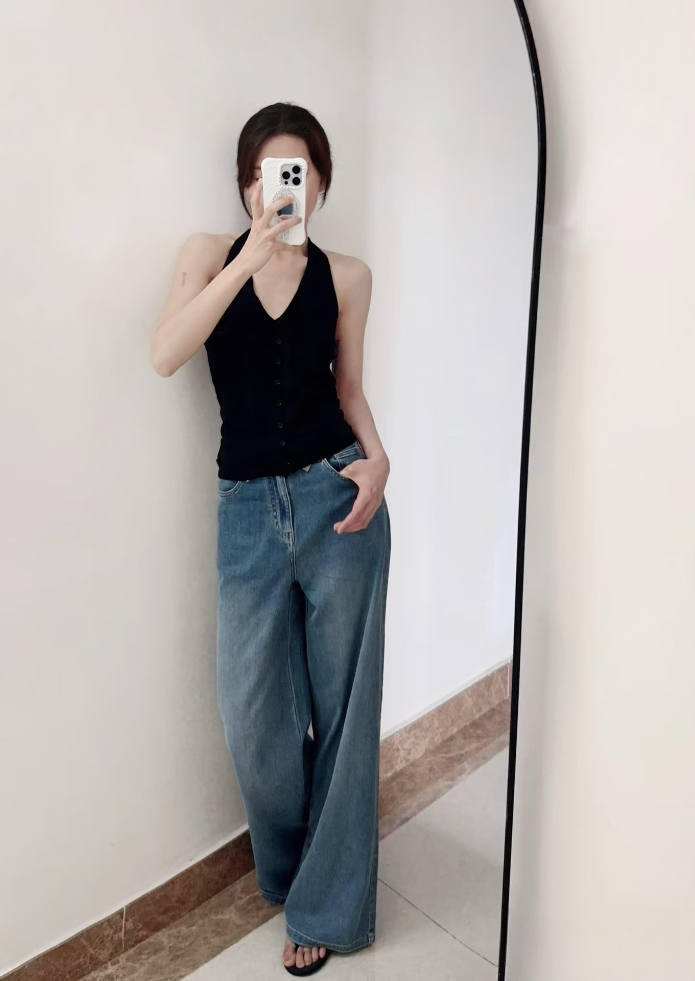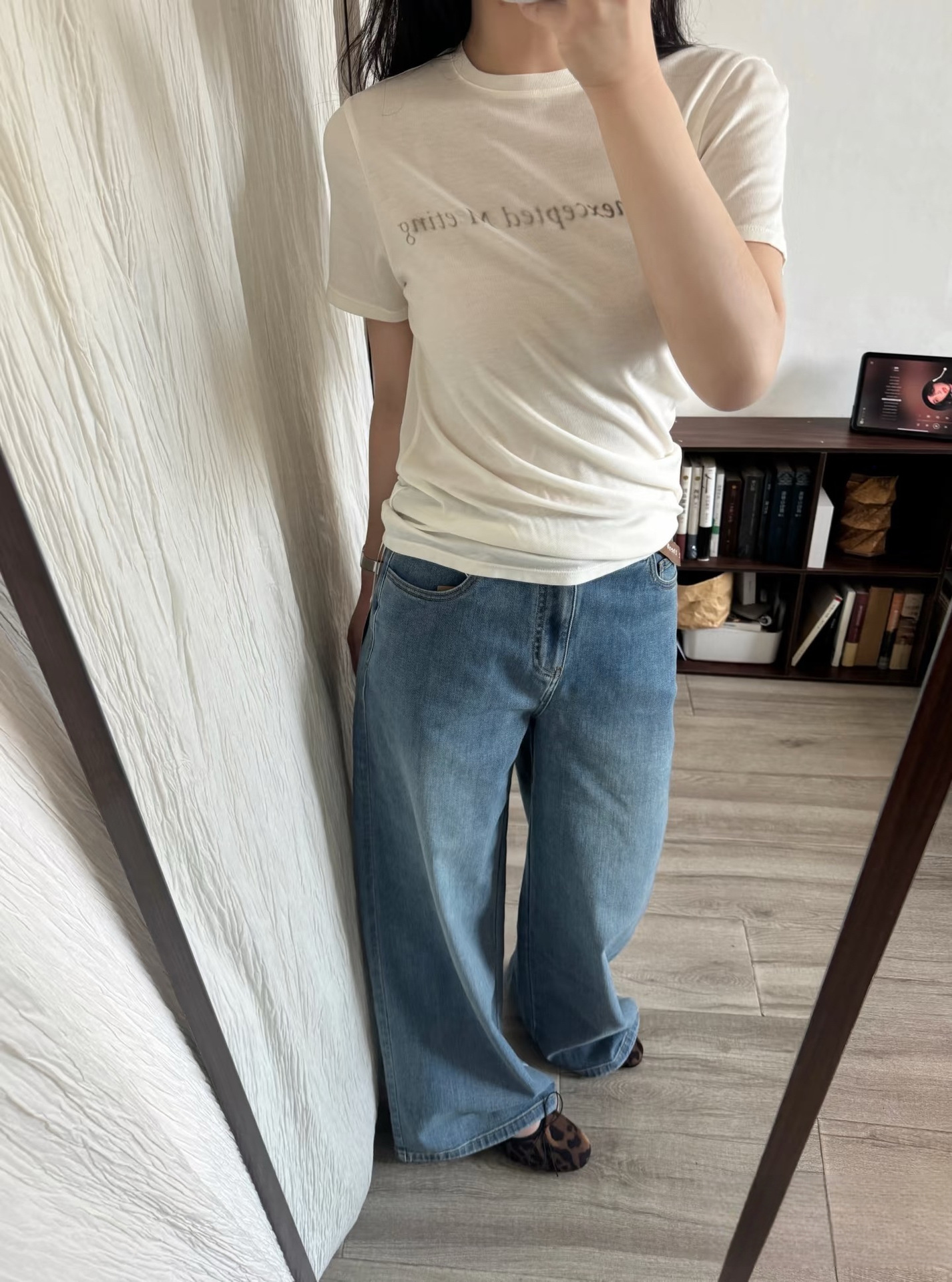새로운 슬림 1343M 중간 허리 클래식 복고풍 실루엣 부드럽고 얇은 통기성 여름 여성용 와이드 레그 데님 바지 5017스토어 가기