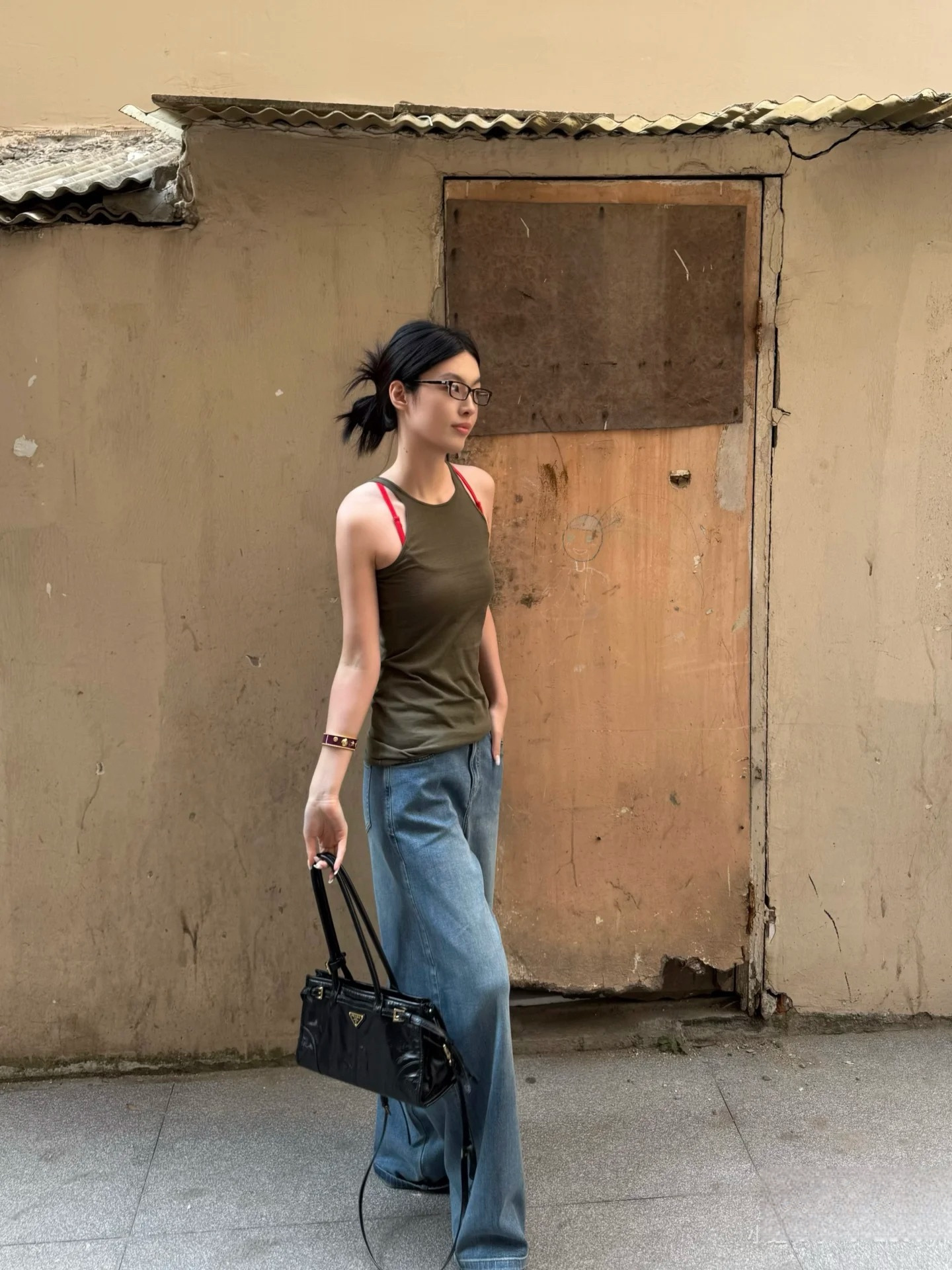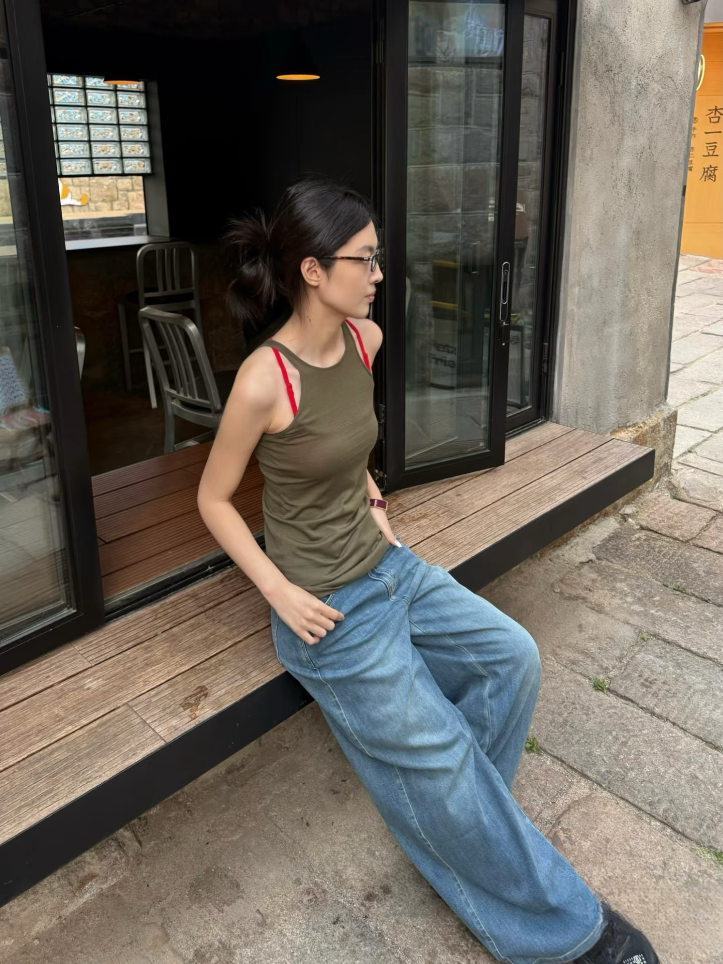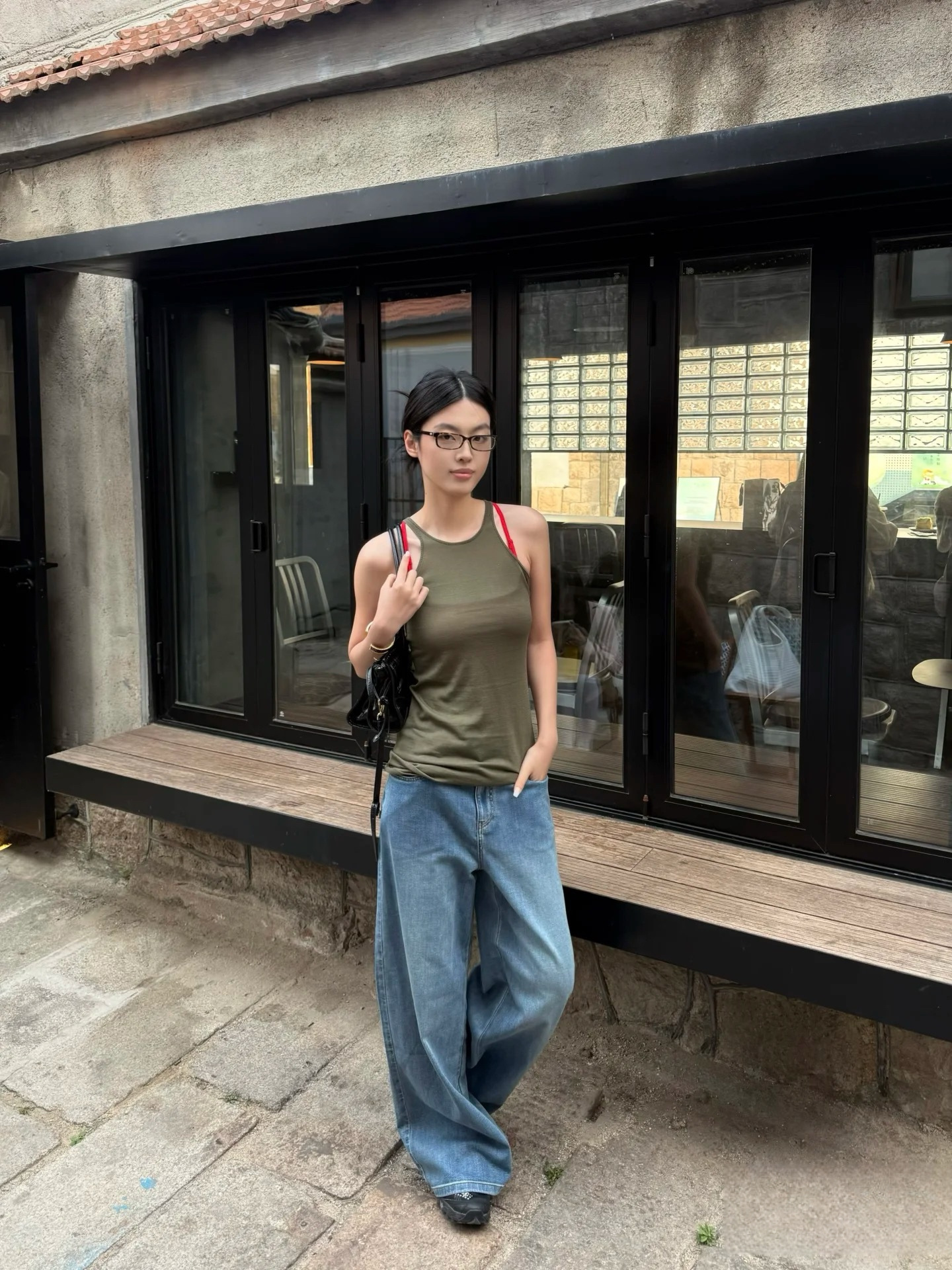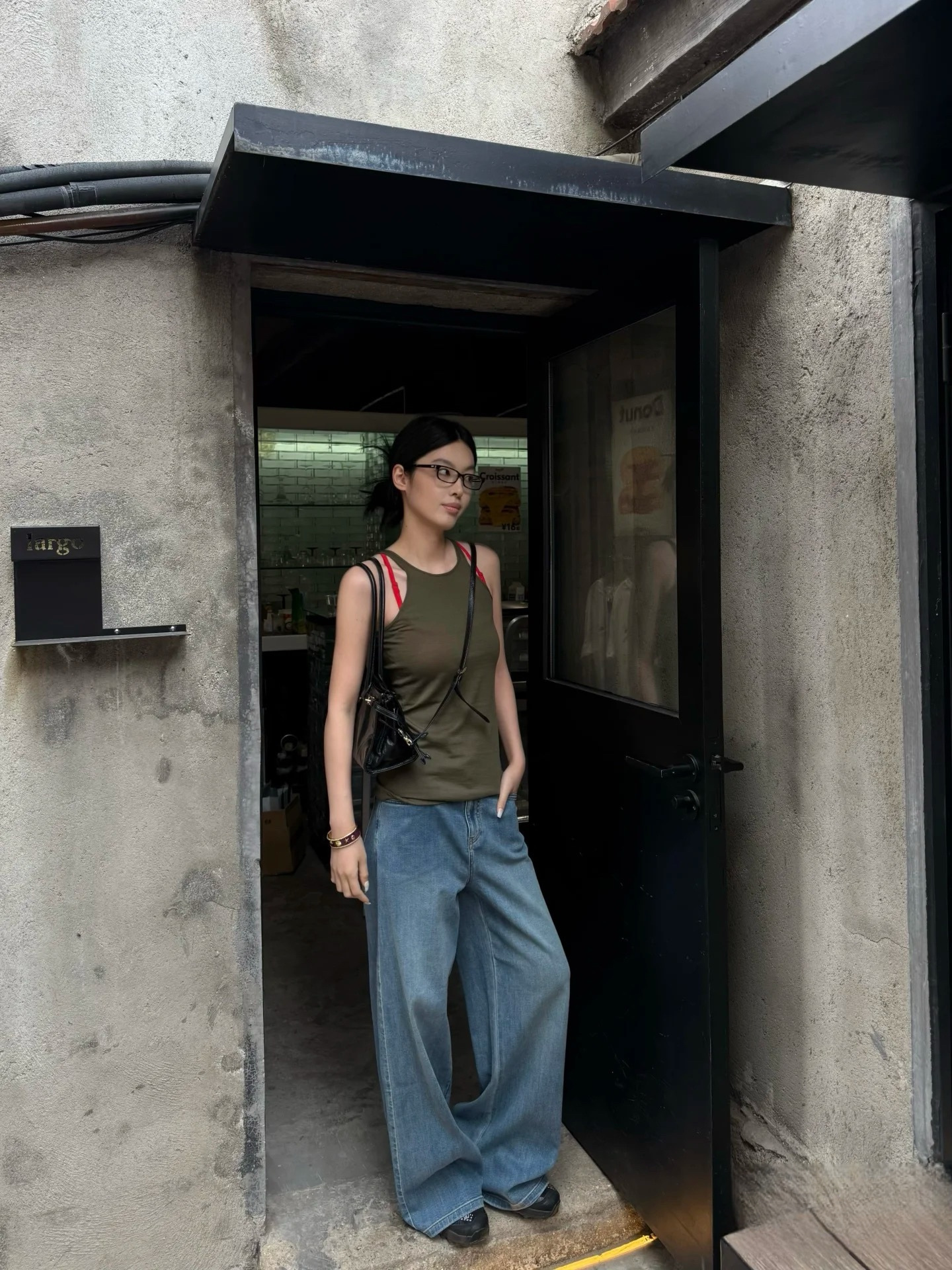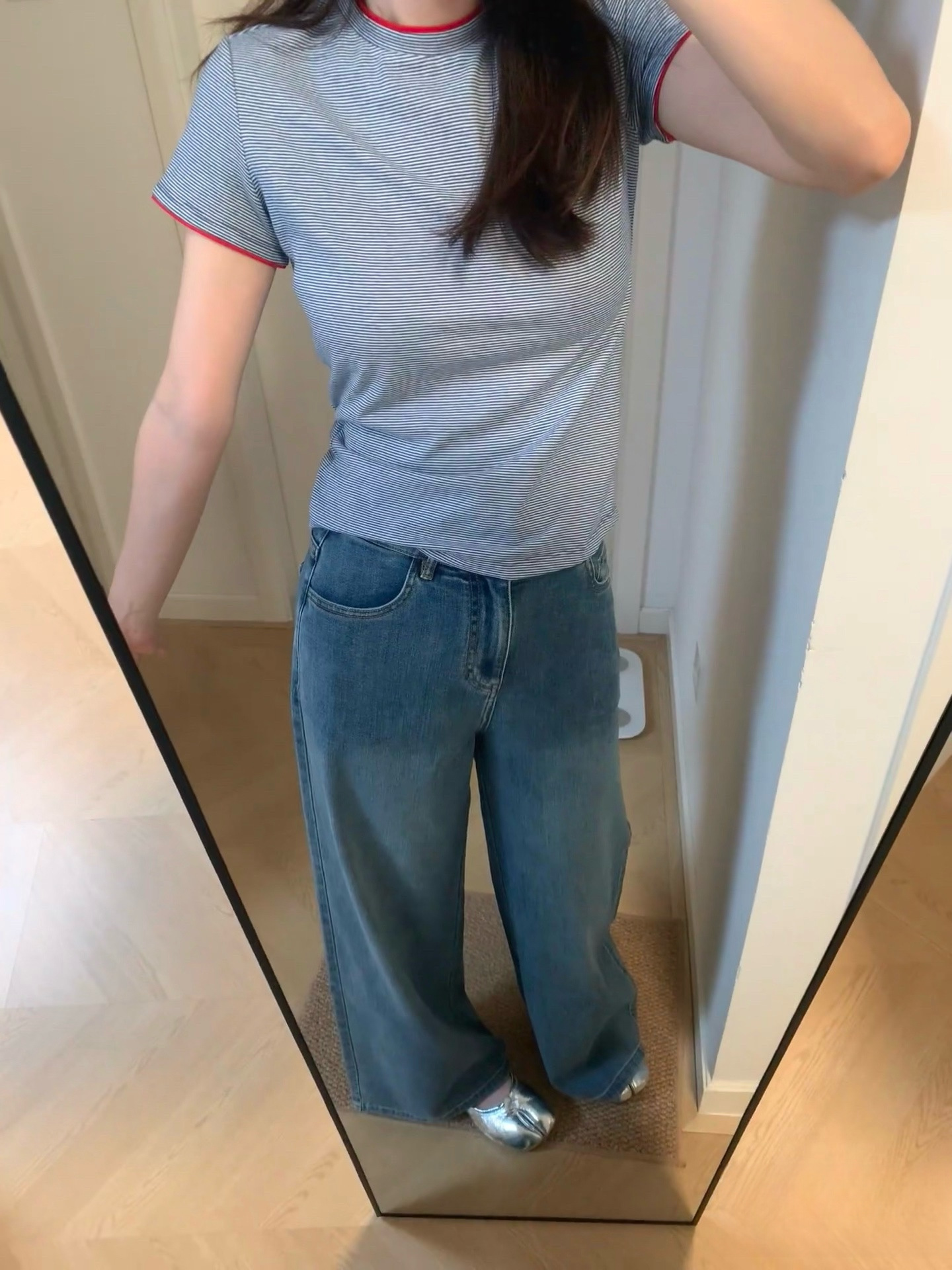새로운 슬림 1343M 중간 허리 클래식 복고풍 실루엣 부드럽고 얇은 통기성 여름 여성용 와이드 레그 데님 바지 5017스토어 가기