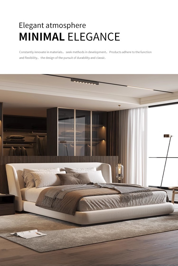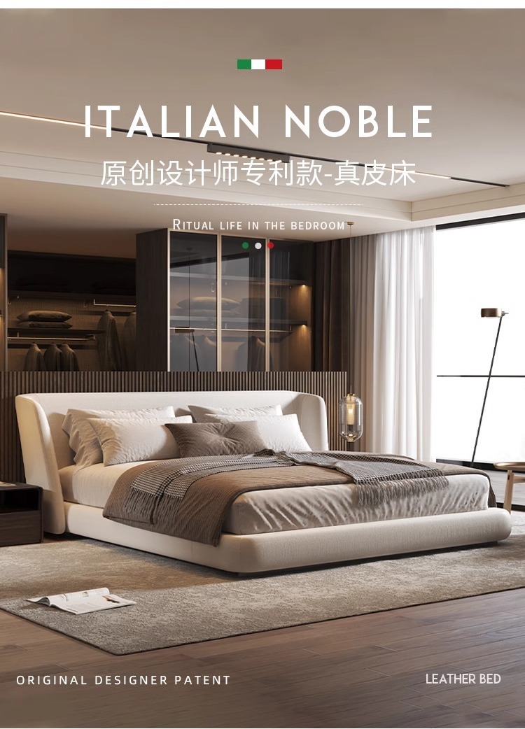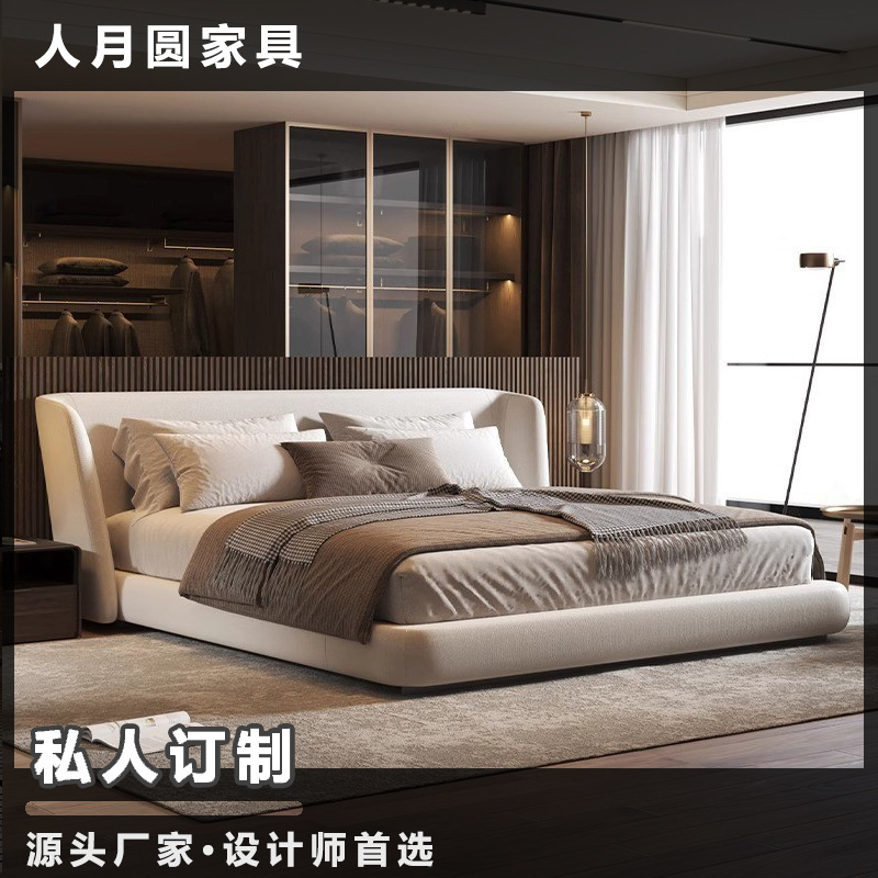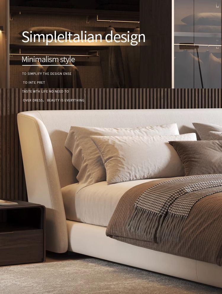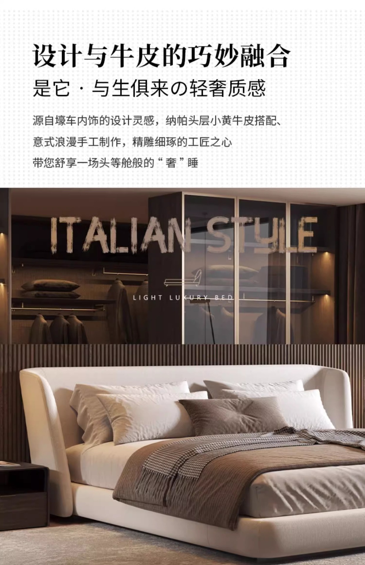 정품 가죽 침대 이탈리아 스타일의 가벼운 럭셔리 미니멀리스트 작은 아파트 마스터 침실 현대적인 단순 광동성 Foshan 가구 하이 박스 더블 웨딩 침대