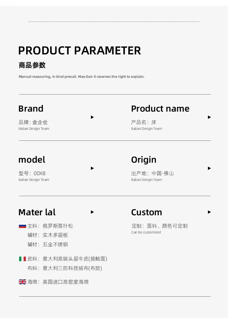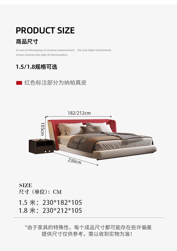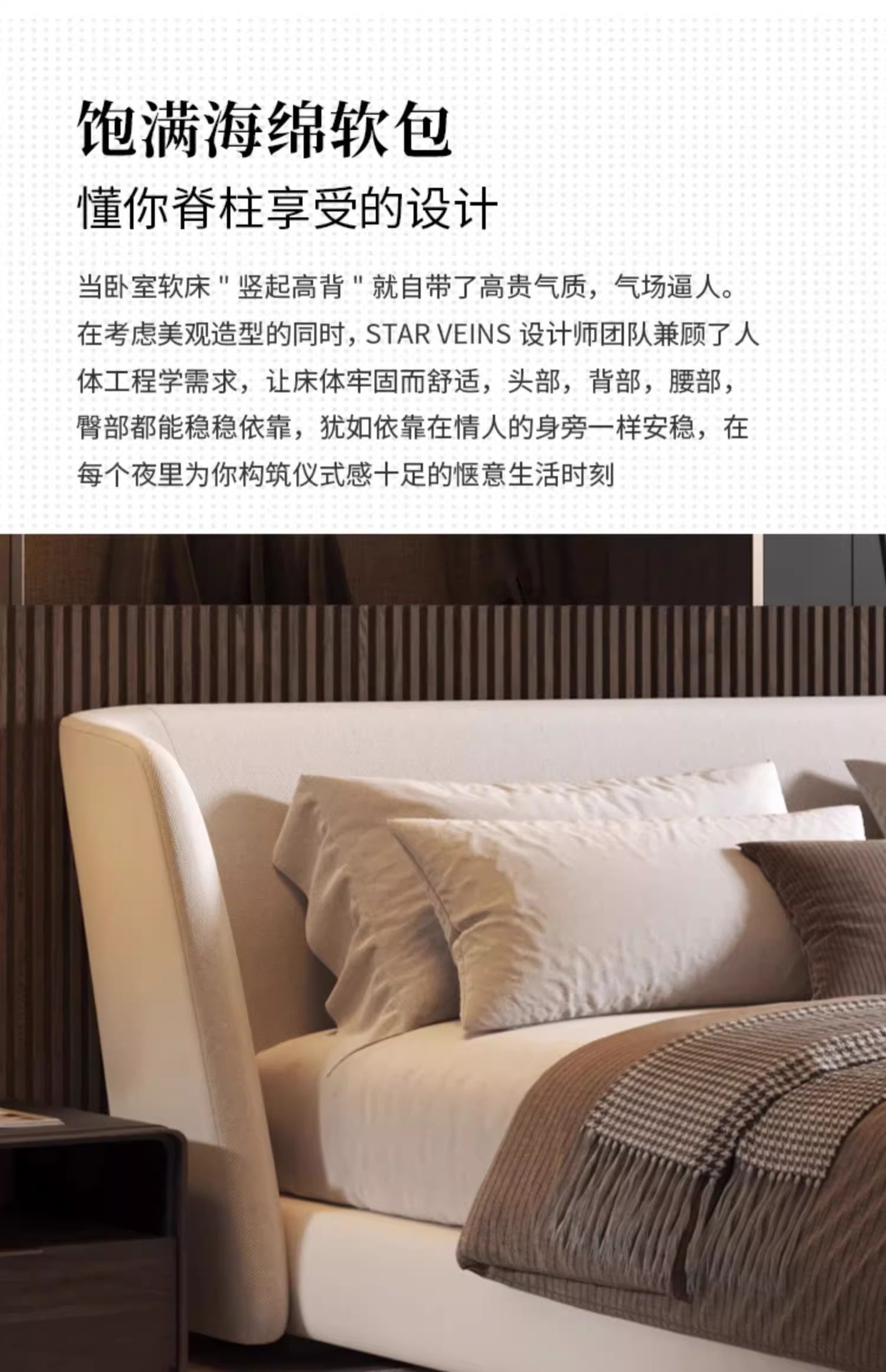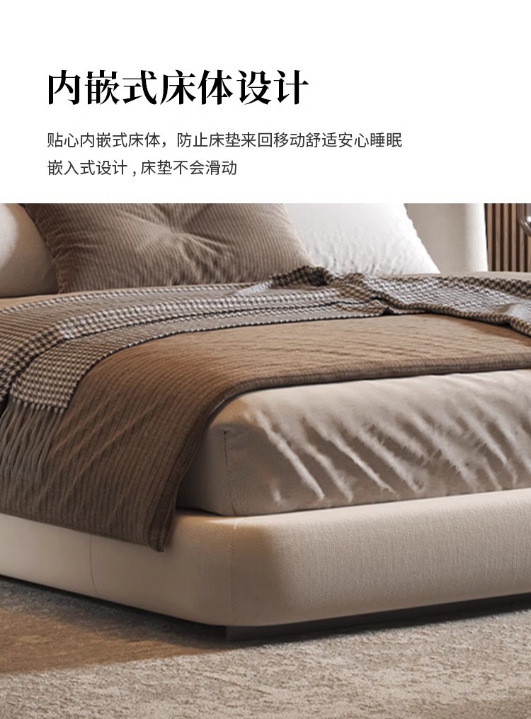 정품 가죽 침대 이탈리아 스타일의 가벼운 럭셔리 미니멀리스트 작은 아파트 마스터 침실 현대적인 단순 광동성 Foshan 가구 하이 박스 더블 웨딩 침대