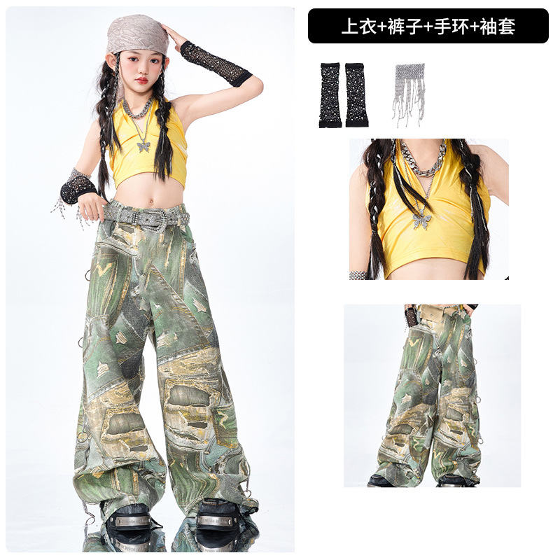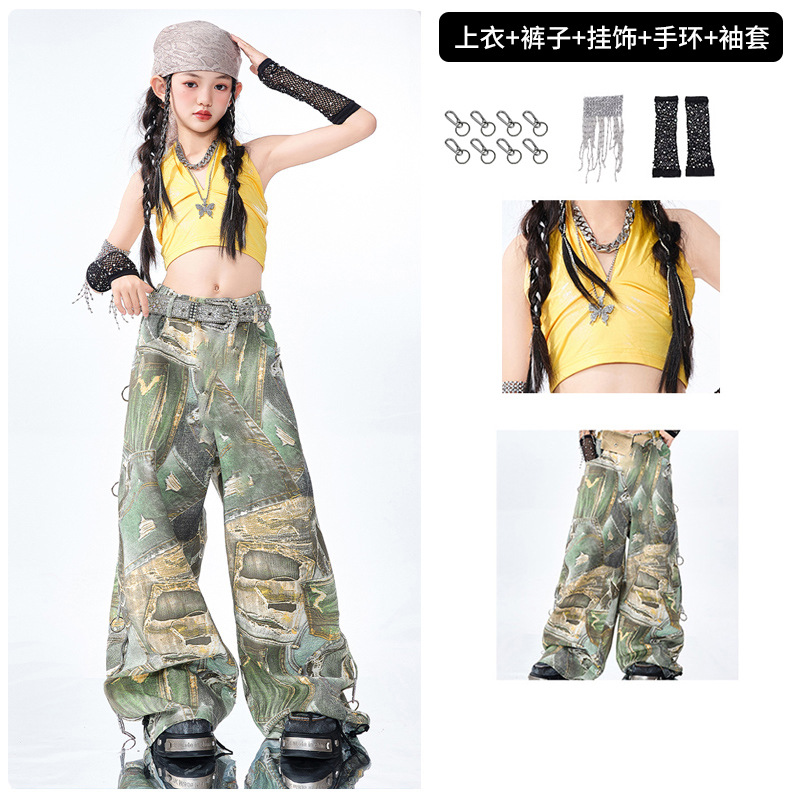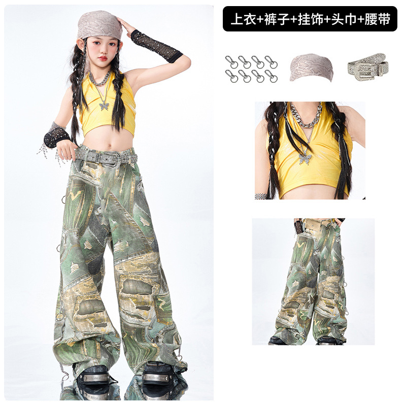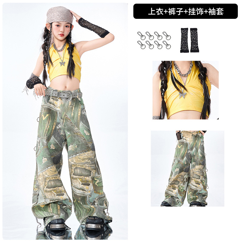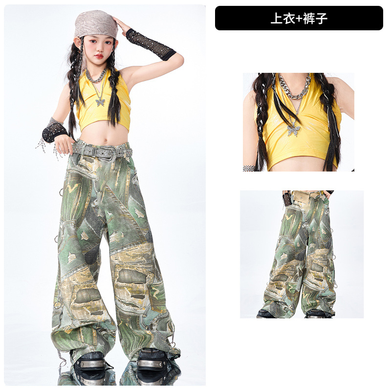 재즈 댄스 소녀 의상, 트렌디하고 패셔너블한 소녀 재즈 스트리트 댄스 공연 의상, 달콤하고 멋진 스타일의 소녀 그룹 캣워크