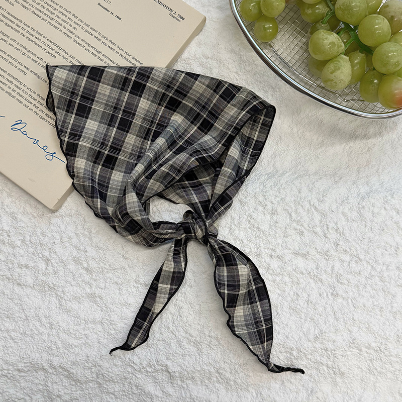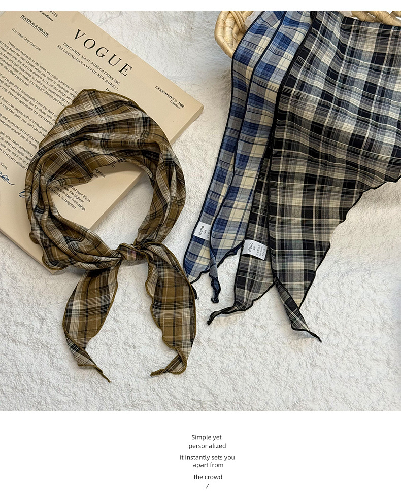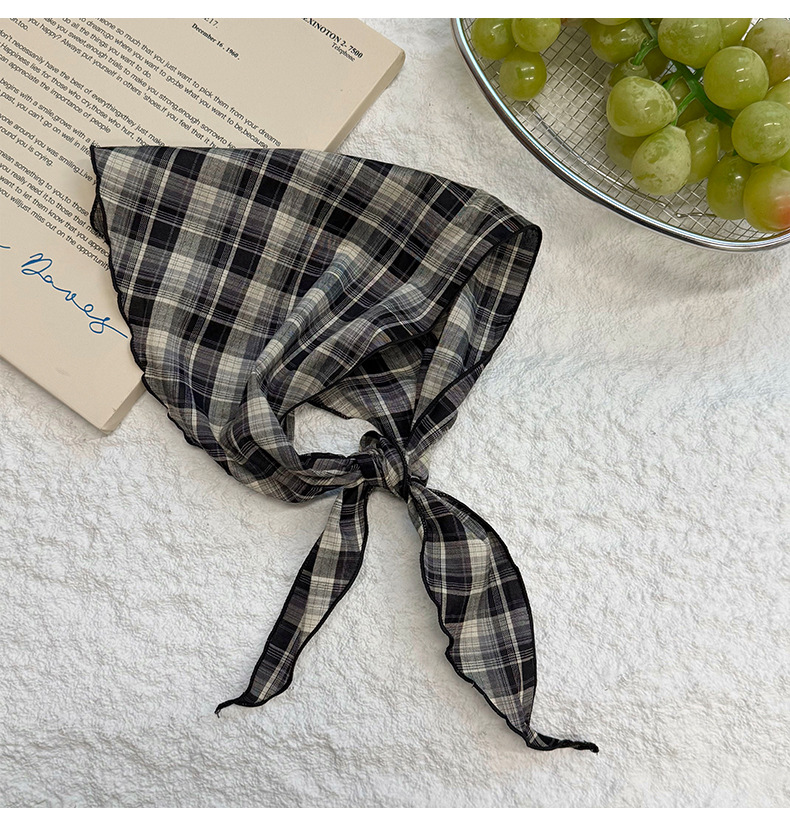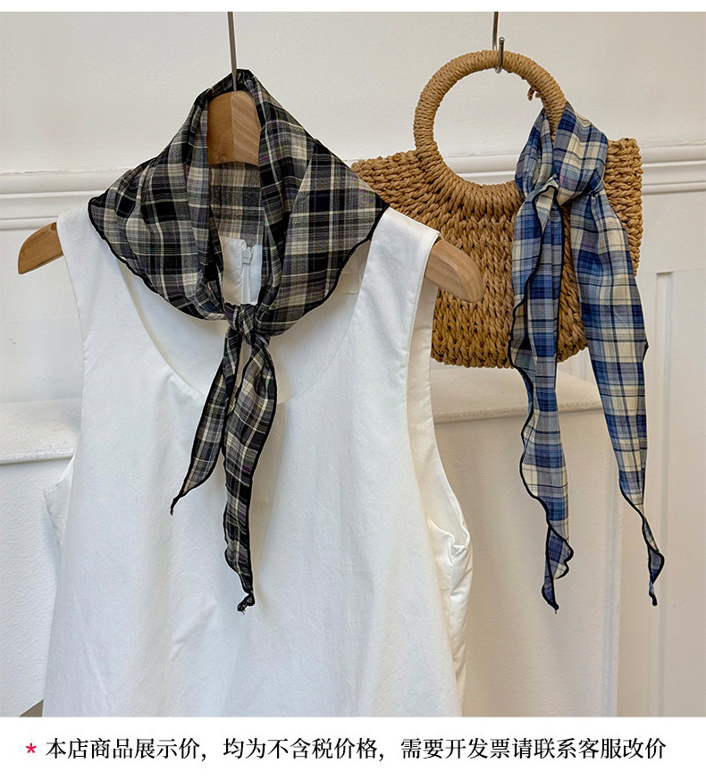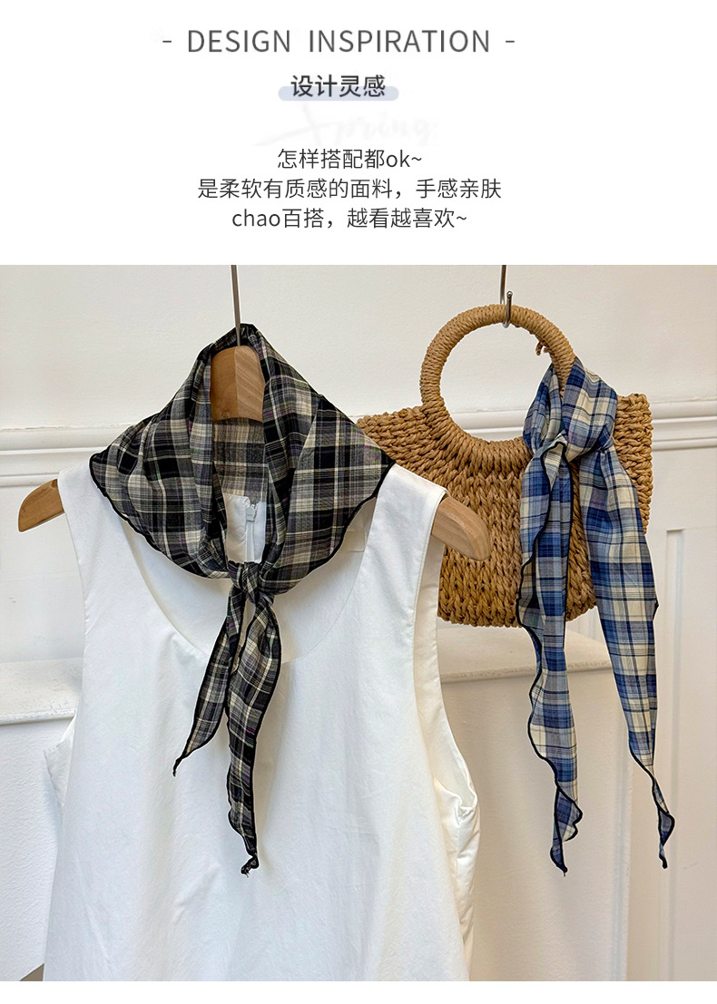 격자 무늬 스카프 여성용 새 스타일 복고풍 다목적 경량 목 보호대 피부 친화적 인 작은 스카프 작은 스카프 허리 삼각형 스카프스토어 가기