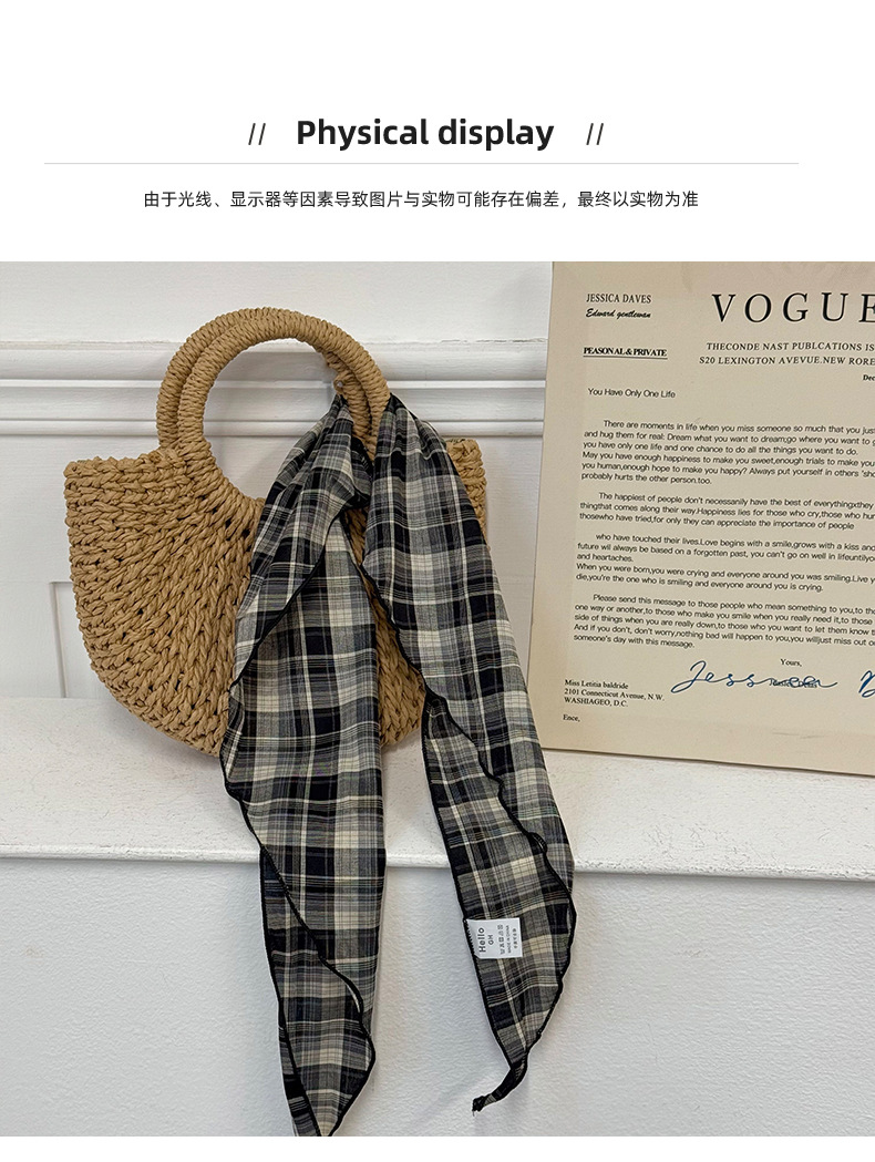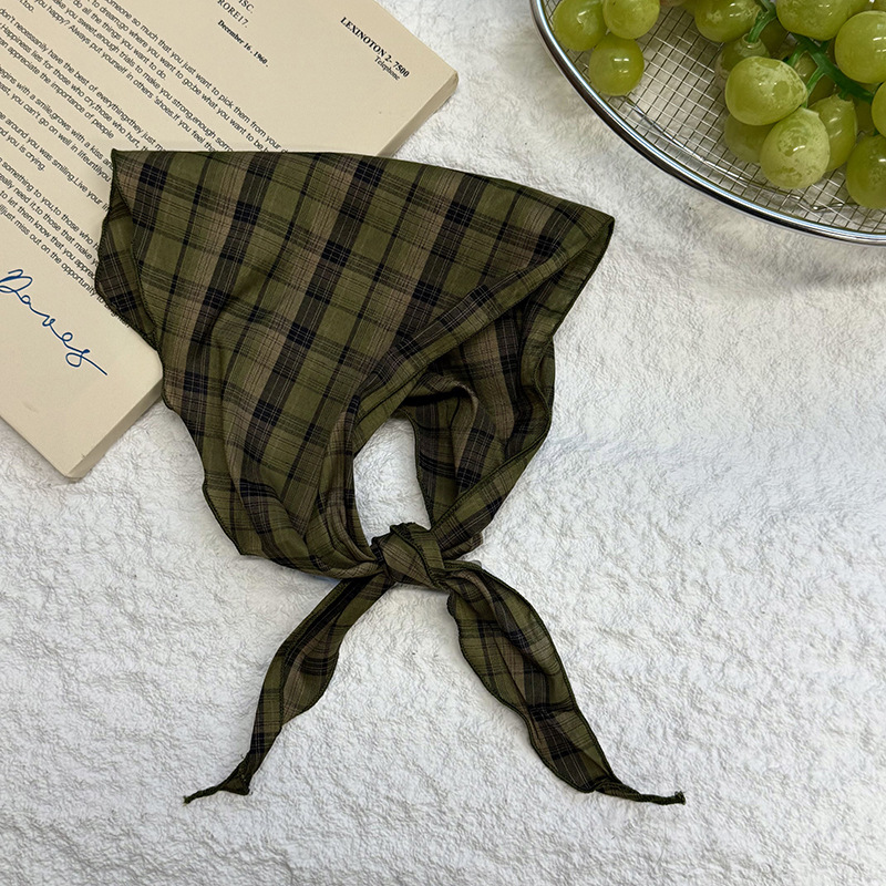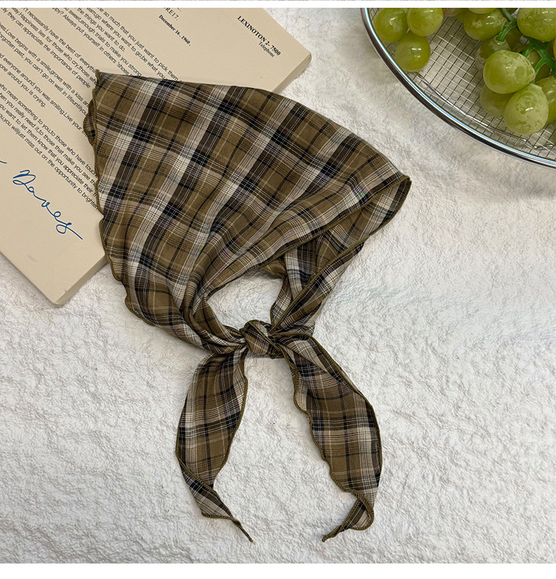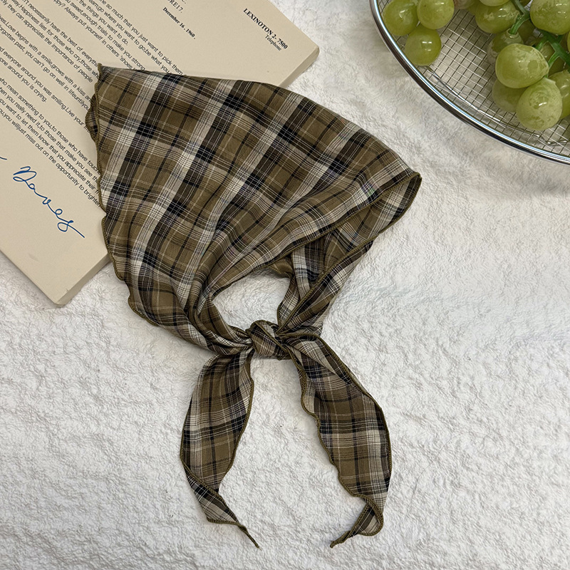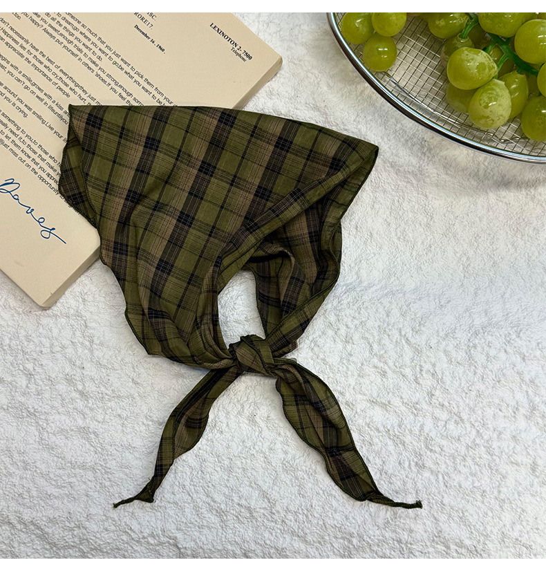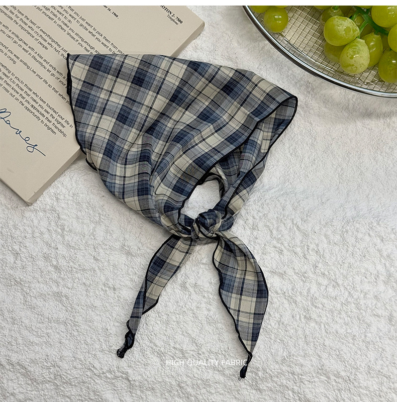 격자 무늬 스카프 여성용 새 스타일 복고풍 다목적 경량 목 보호대 피부 친화적 인 작은 스카프 작은 스카프 허리 삼각형 스카프스토어 가기