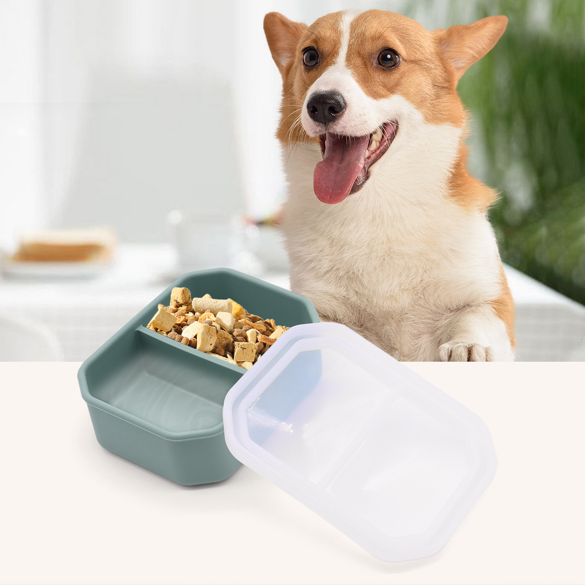 애완동물을 위한 국경 간 FDA 실리콘 신선도 유지 그릇, 누출 방지 개 식품 분리 접시, 뚜껑이 있는 휴대가 간편한 피더스토어 가기