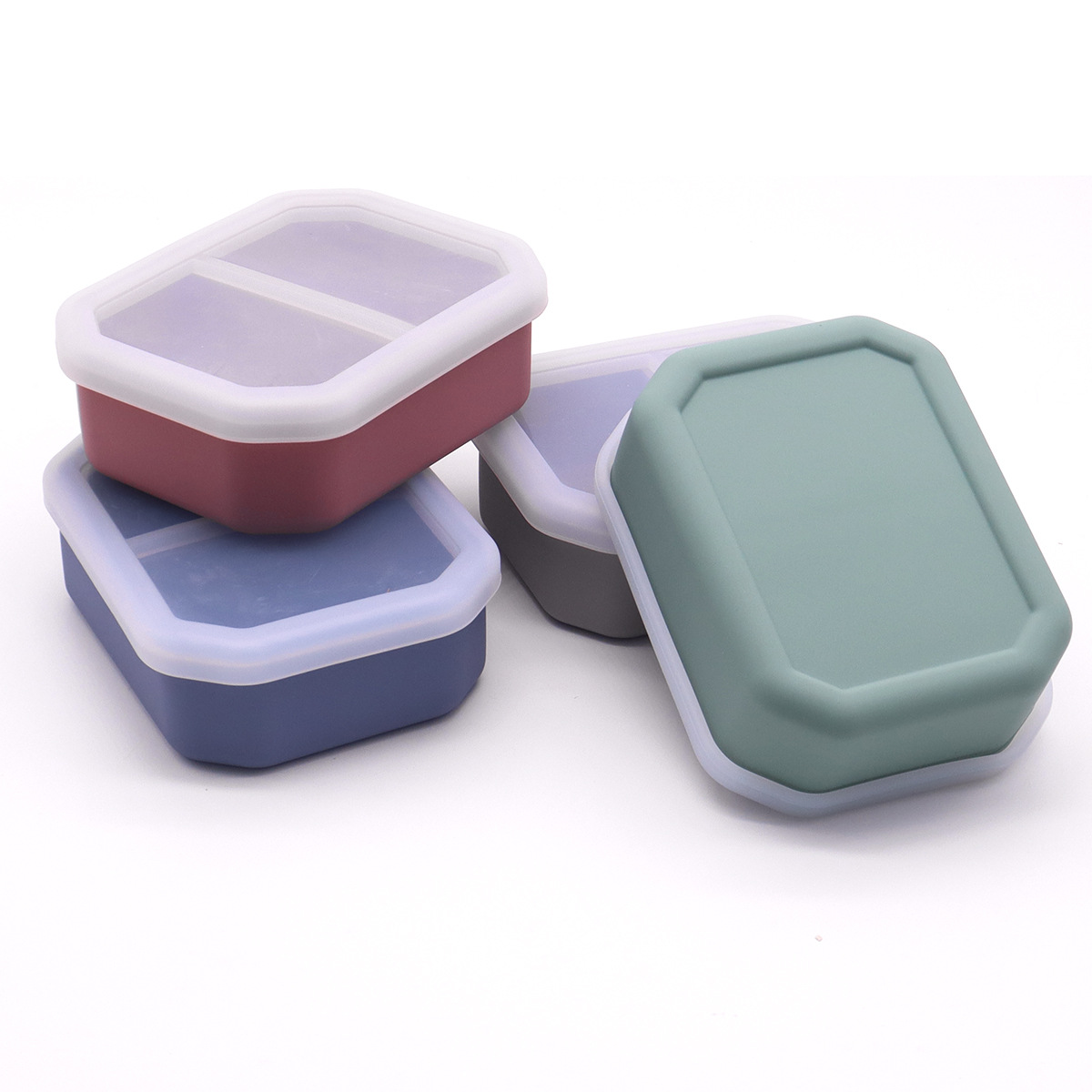 애완동물을 위한 국경 간 FDA 실리콘 신선도 유지 그릇, 누출 방지 개 식품 분리 접시, 뚜껑이 있는 휴대가 간편한 피더