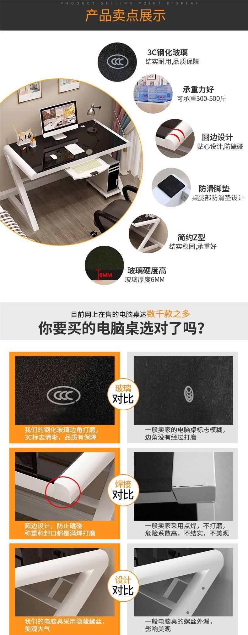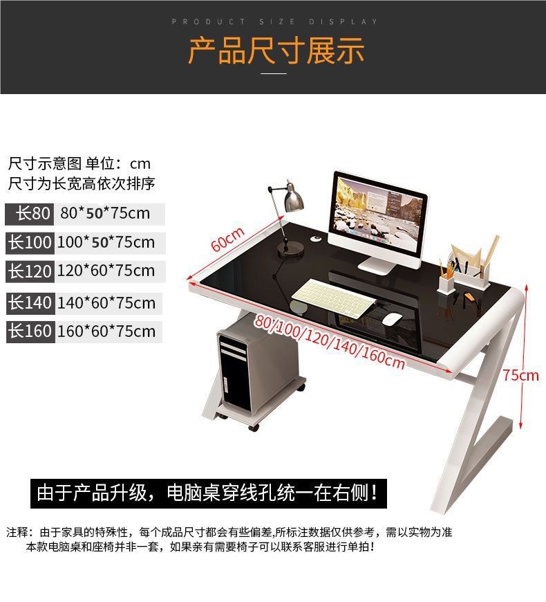 강화 유리 컴퓨터 책상 데스크탑 홈 책상 직원 사무실 책상 간단한 학습 책상 학생 책상