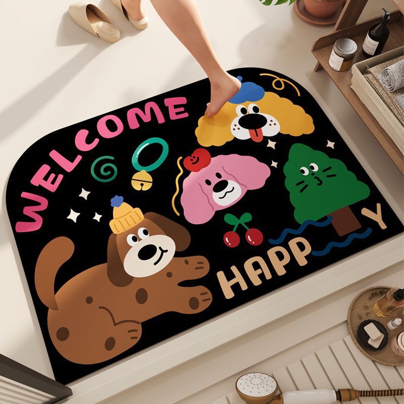 규조토 진흙 바닥 매트 만화 욕실 흡수성 미끄럼 방지 바닥 매트 가정용 욕실 화장실 문 얼룩 방지 속건성 바닥 매트스토어 가기
