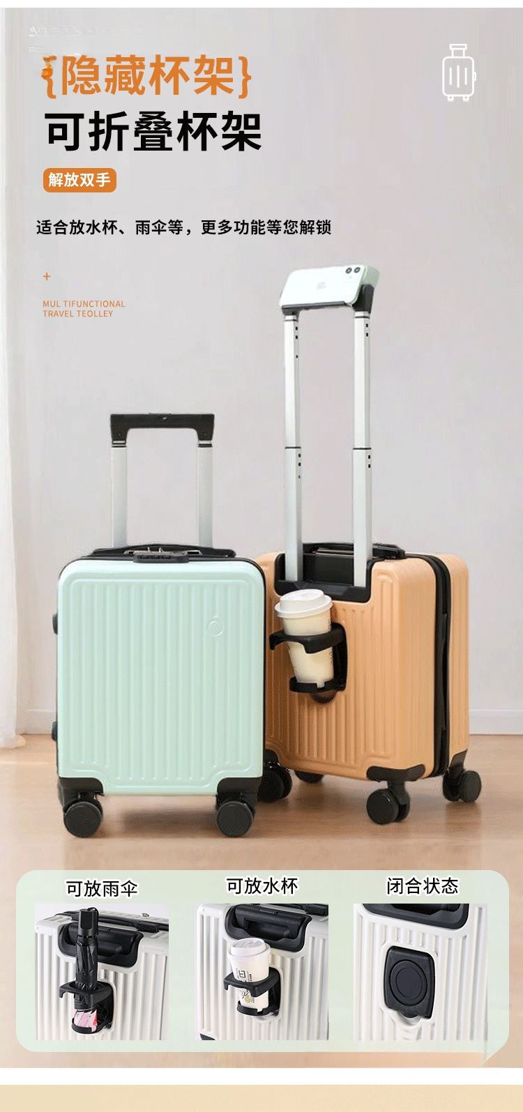 탑승 가능한 소형 여행가방, 여행용 트롤리 케이스, 스프링 및 가을 항공 무료 체크인 미니스토어 가기