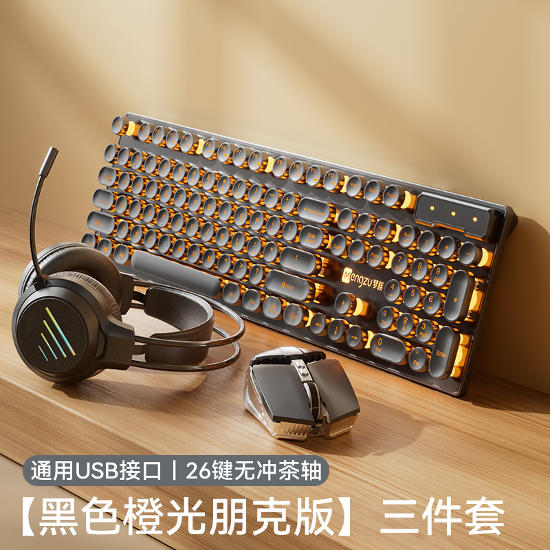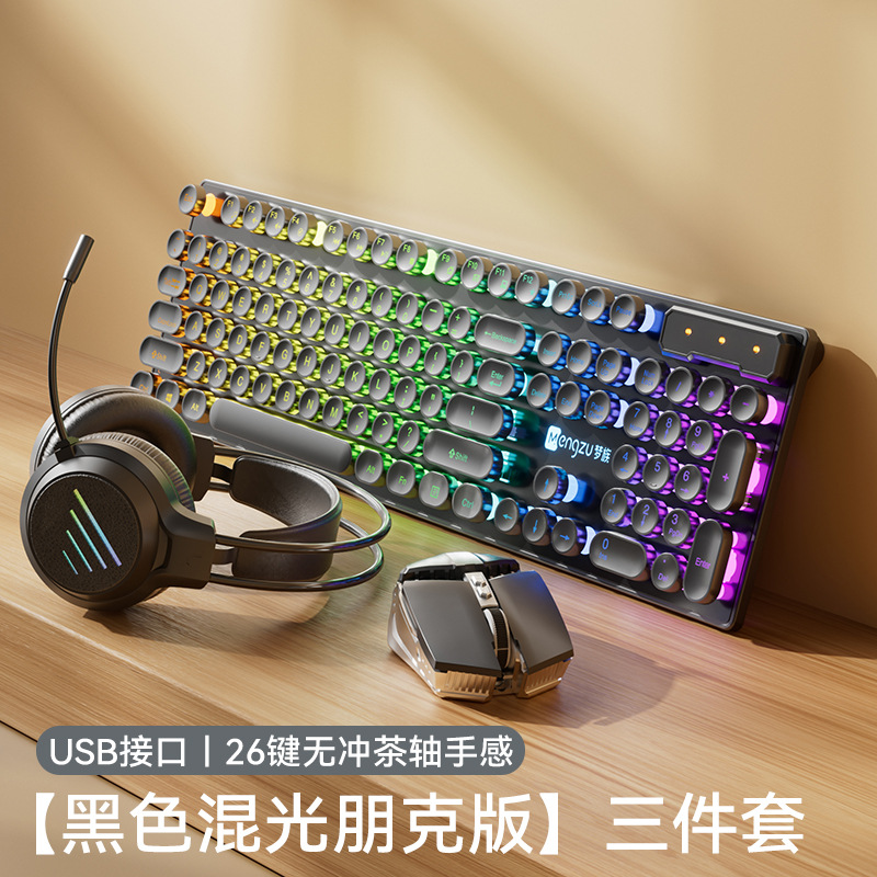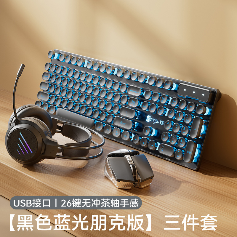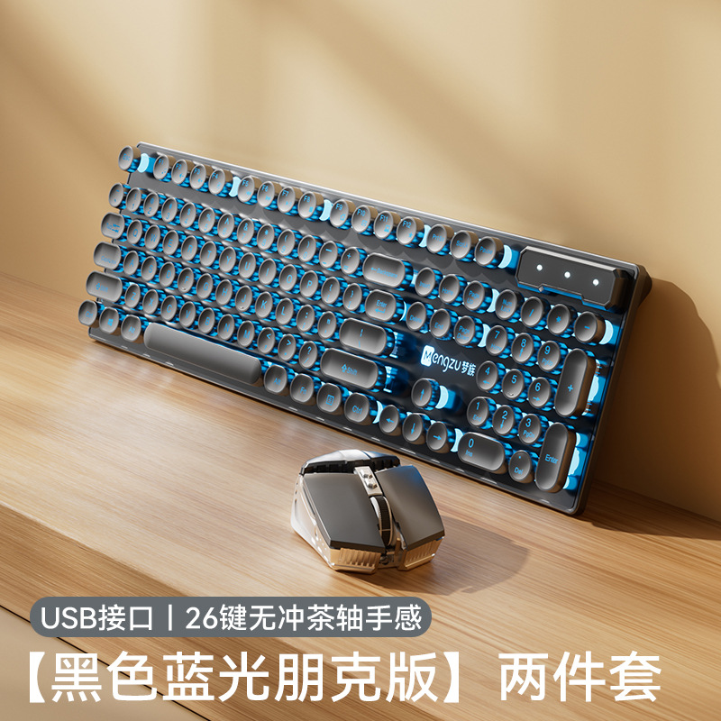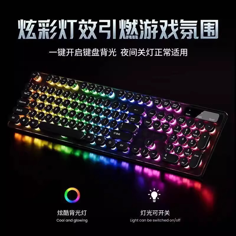 레트로 펑크 키보드 데스크탑 컴퓨터 범용 기계식 키보드 및 마우스 세트 사무실 전용 무음 무선 유선