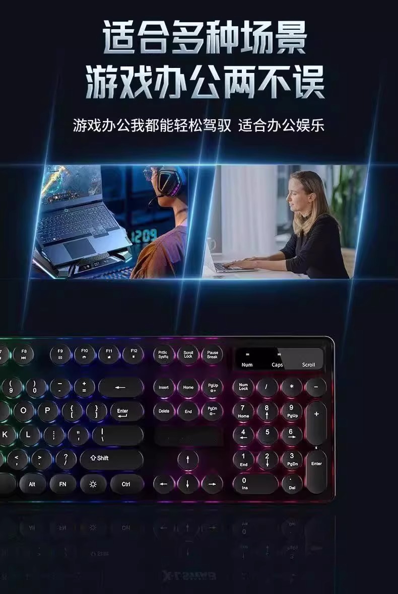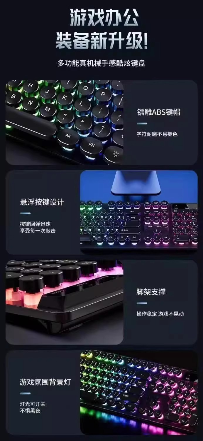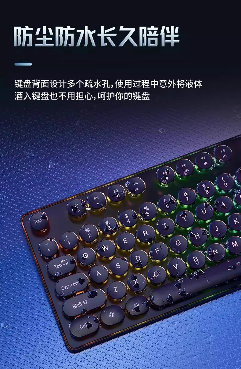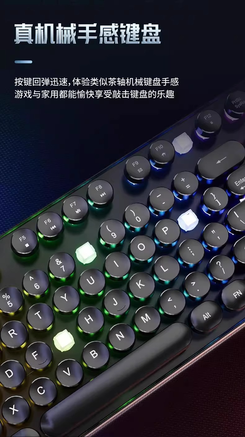 레트로 펑크 키보드 데스크탑 컴퓨터 범용 기계식 키보드 및 마우스 세트 사무실 전용 무음 무선 유선