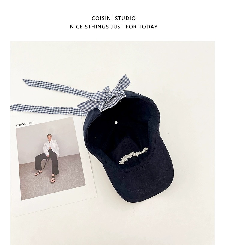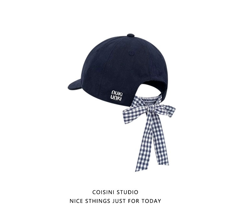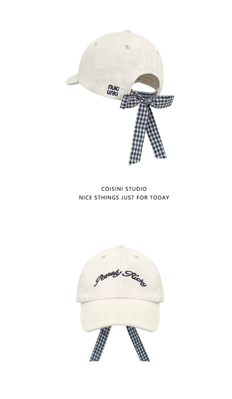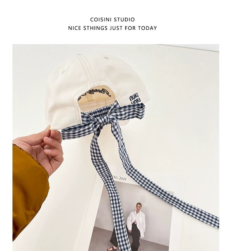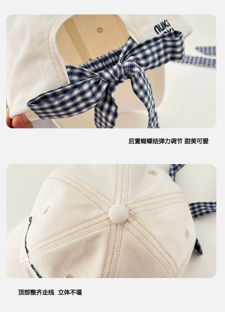 2025 새로운 디자인 miu 체크 무늬 나비 넥타이 피크 캡 봄 여름 문자 자수 차양 및 자외선 차단